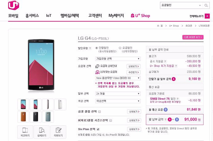 LG유플러스도 U플러스 샵에서 갤럭시S6 엣지뿐 아니라, LG전자의 최신 프리미엄 제품인 V10에도 법정 최대 지원금인 33만원을 책정해 판매하고 있다.