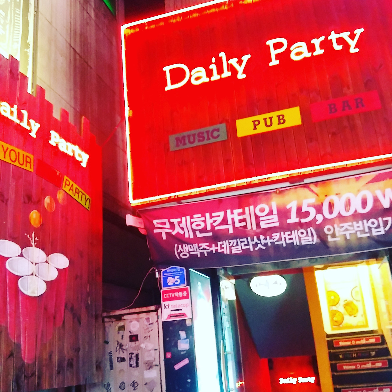 저녁 7시 홍대 상상마당 인근. 깐부치킨과 박명수 족발의 명수 너머로 데일리 파티(Daily Party)란 간판이 눈에 띈다. 뭔가 이국적인 느낌의 간판이다. 지하로 내려갔다.