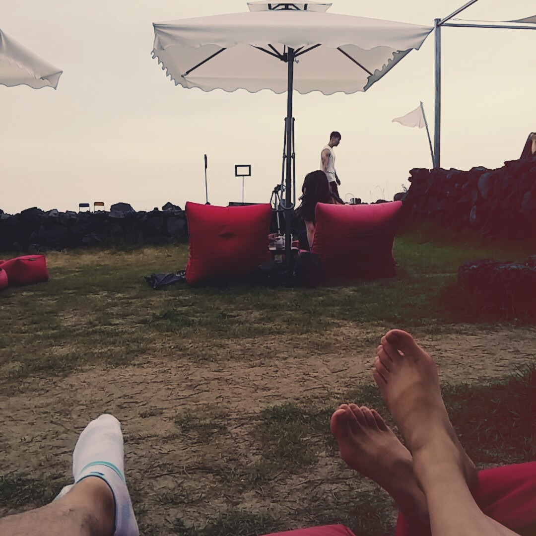 *점심을 먹었으니 여유롭게 바다를 보며 커피 한잔 하기를 추천한다. 카페 마니(cafe mani). 누워서 기댈 수 있는 빨간 색 큰 1인용 소파가 있다. 누워서 제주도의 푸른 바다를 보며 커피 한 잔의 여유를 즐길 수 있다. 요즘 화젯거리인 곳이니 대기는 필수다. 다만, 여기는 인원수대로 음료를 시켜야 한다. 카페 특성상 테이블 회전이 빠르지 않다 보니 공감이 되기도 한다.