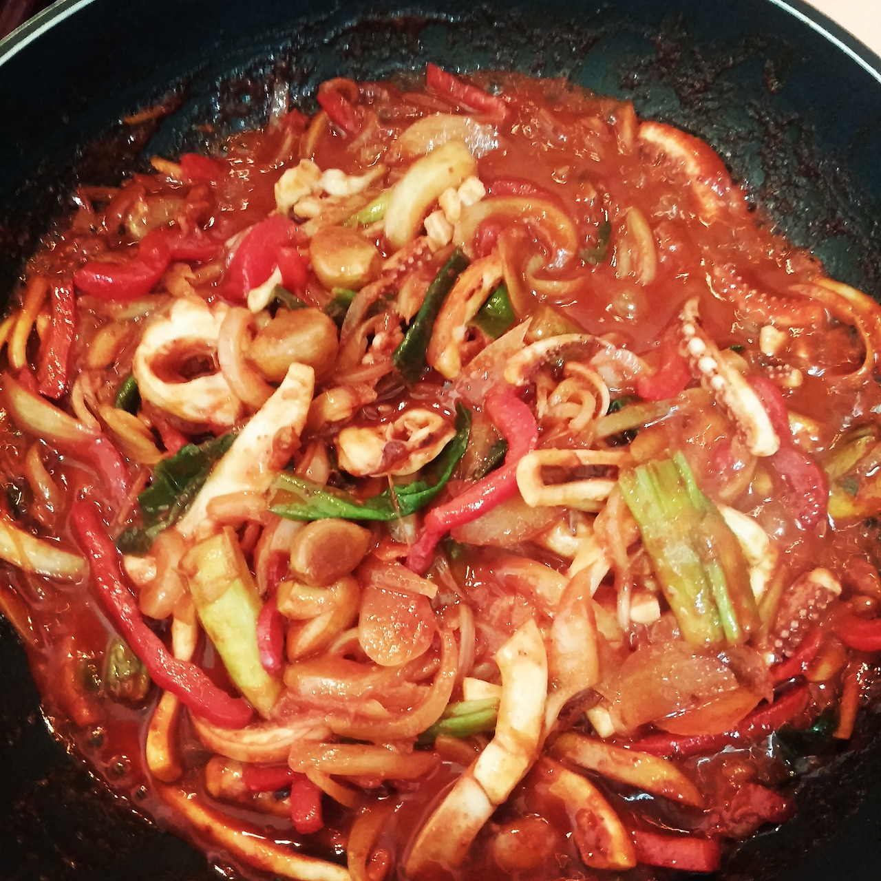 양념이 오징어에 잘 스며들도록 조리면서 맛을 본다. 원하는 맛이 됐다면 불을 끄고 맛있게 먹으면 된다