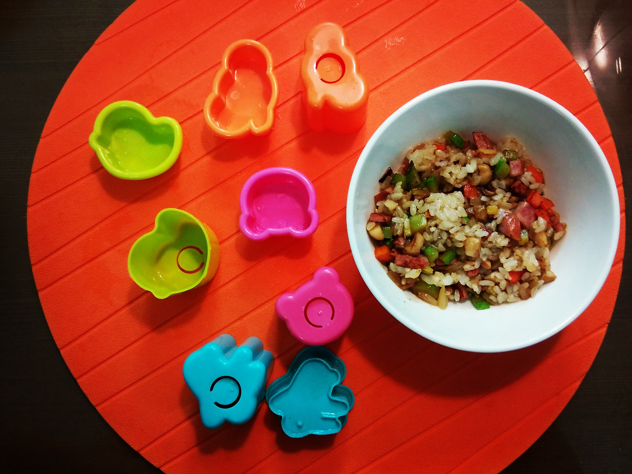 다이소에 가면 2~3천 원이면 살 수 있다. 틀을 가지고 아이와 함께 볶음밥을 동물 모양으로 찍는다.