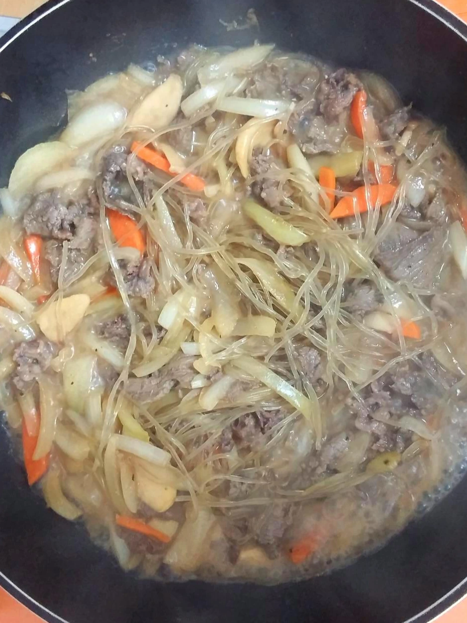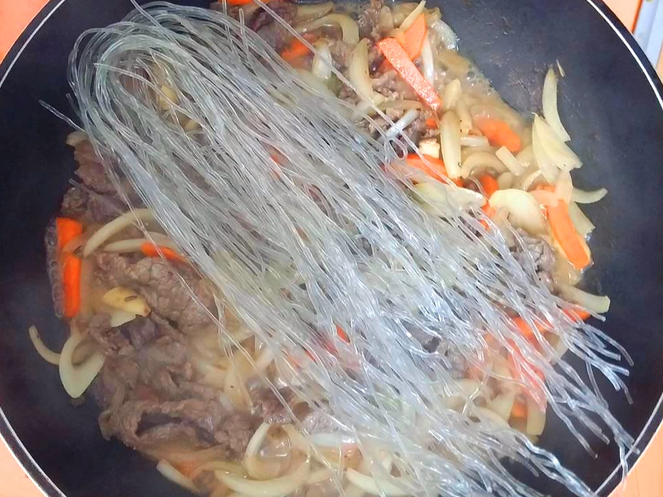 10. 미리 데쳐놓은 당면을 넣고 끓인다.
