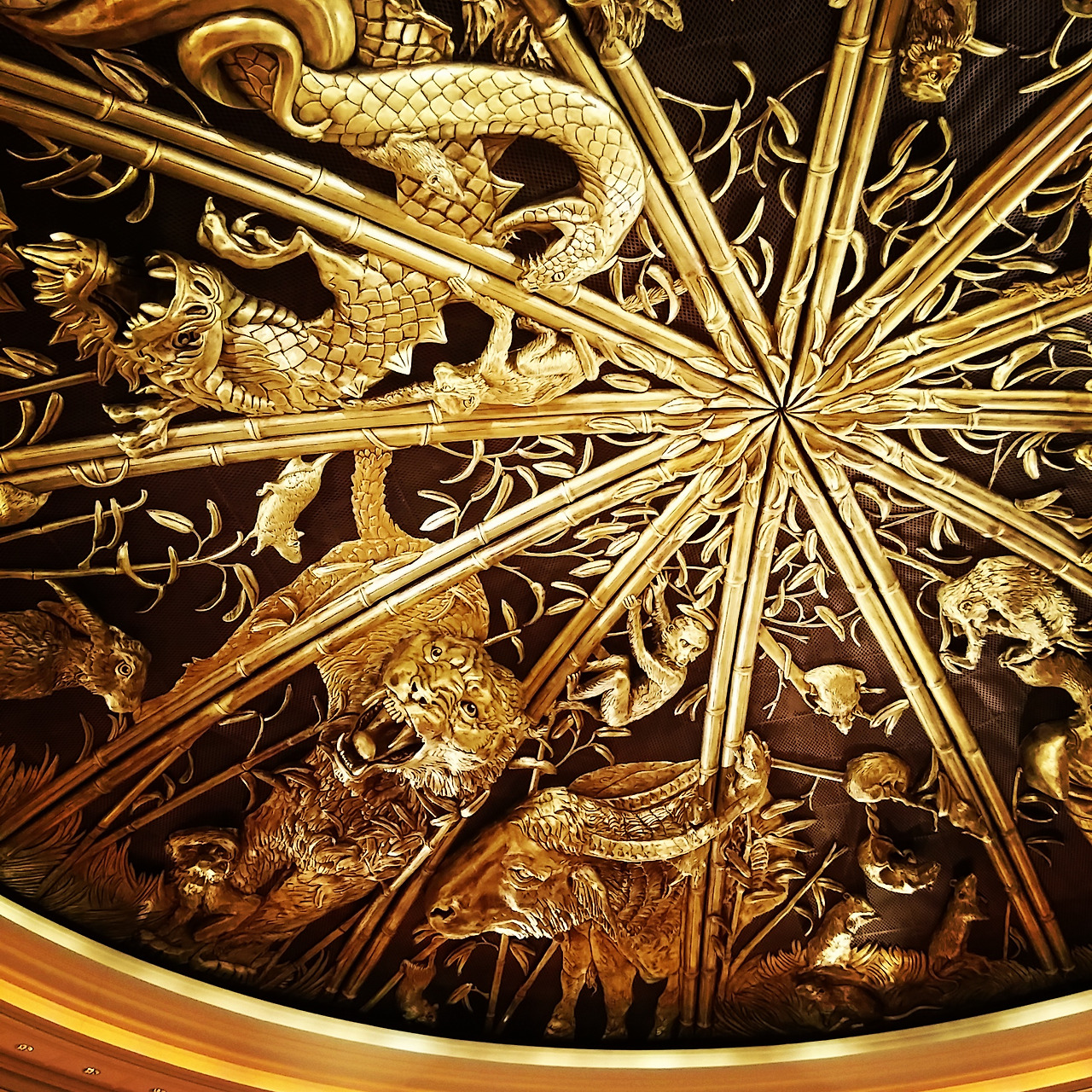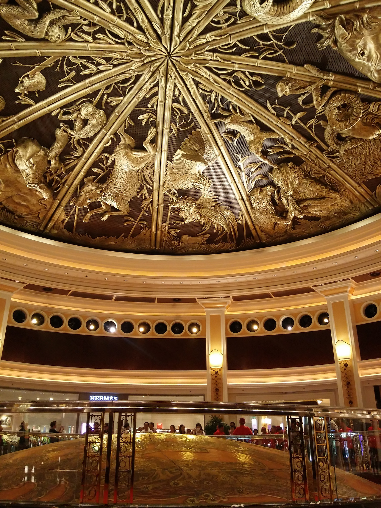 명품 매장이 좌우로 있는 통로를 지나니 사람들이 원형의 천장이 보였다. 동물이 새겨져 있는 천장이었다. 금방이라도 천장에서 바닥으로 달려올 것 같이 입체적이었다.