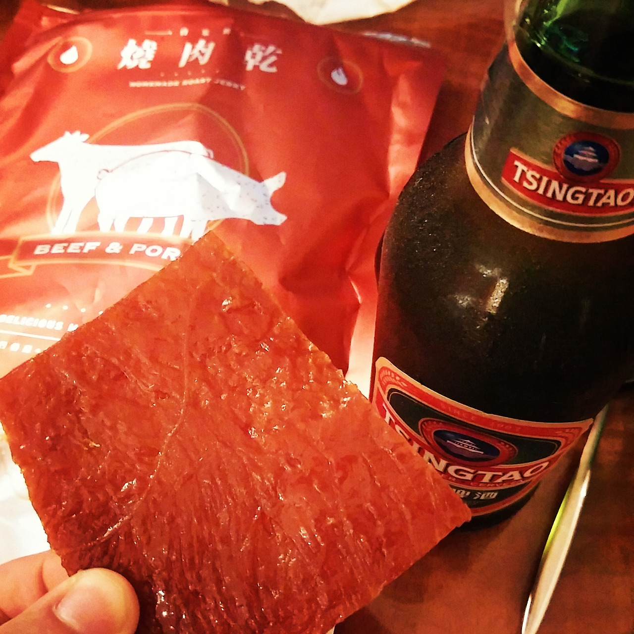 육포의 진한 맛과 향이 칭타오와 어우러지니 하루의 피로가 싹 사라지는 느낌이다.