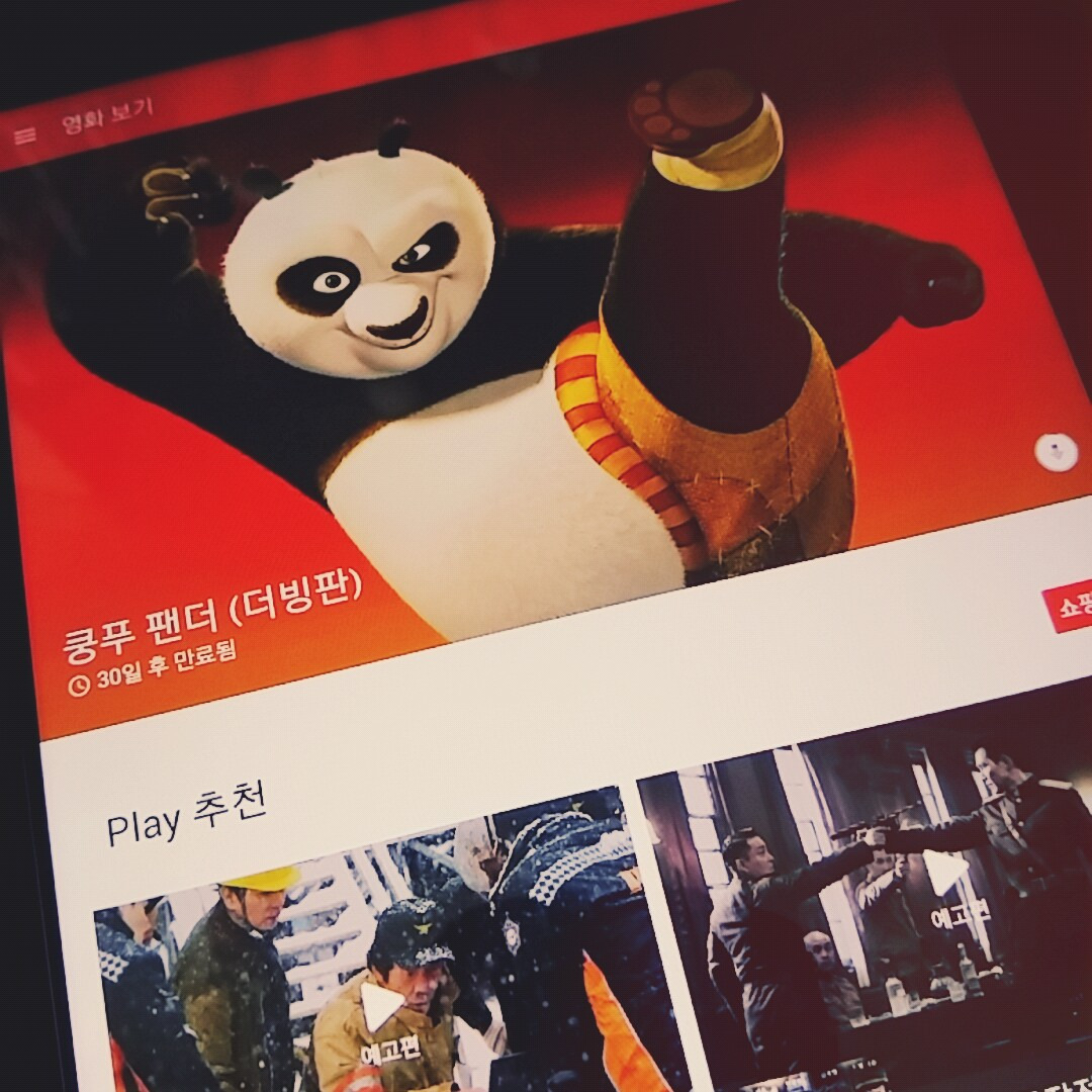 아들이 쿵푸팬더를 모르는 것은 아니다. 아내가 미리 쿵푸팬더 영화를 보여주며 선행학습은 마쳤다. 구글에서 7일 대여료 1200원이다. 우린 굿 다운로더를 추구한다.