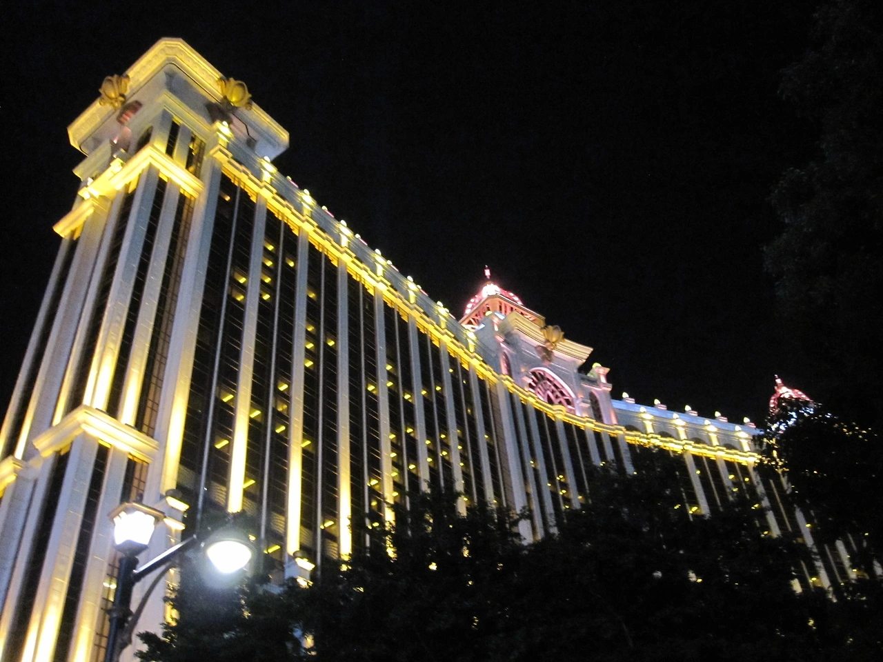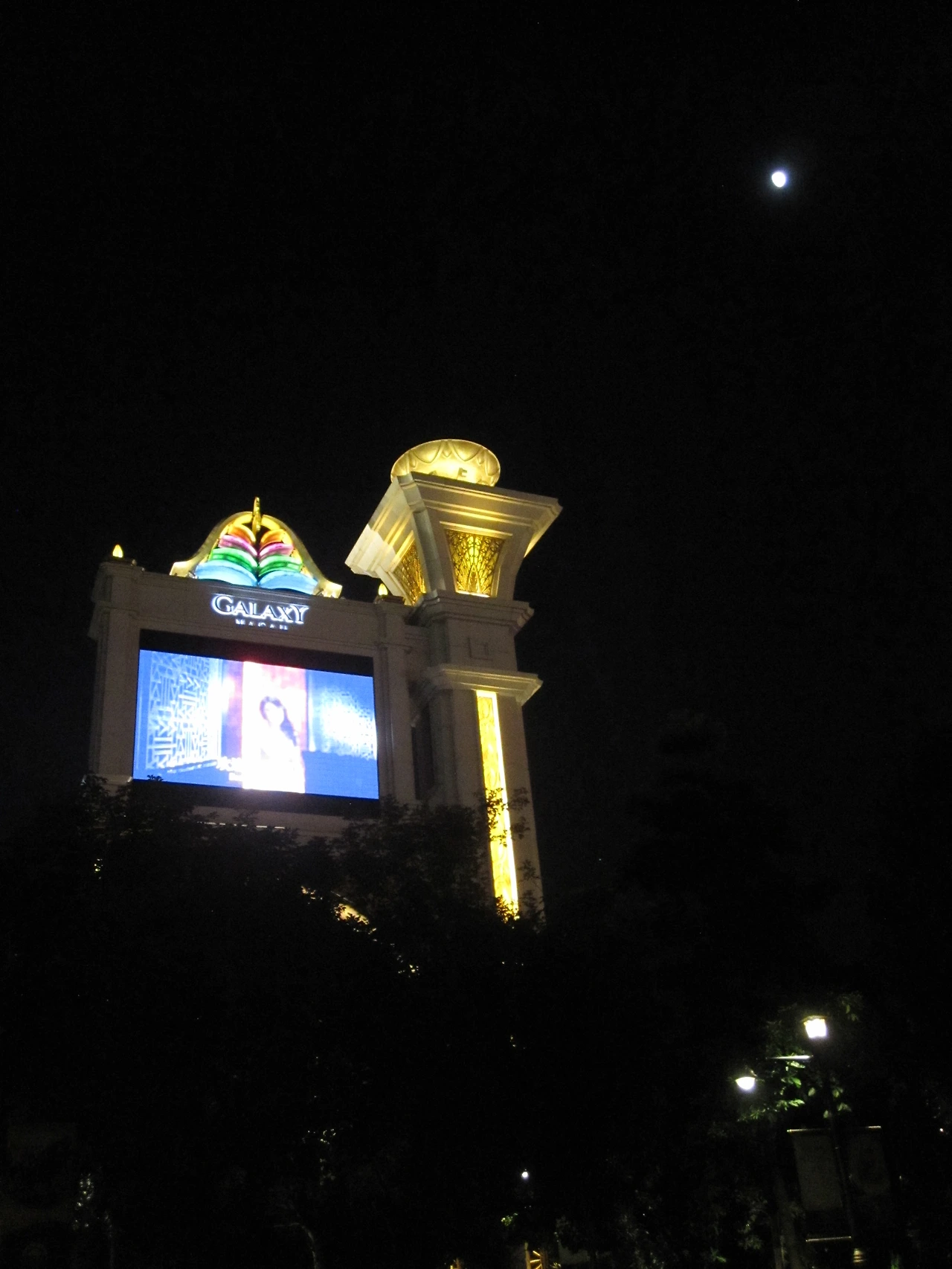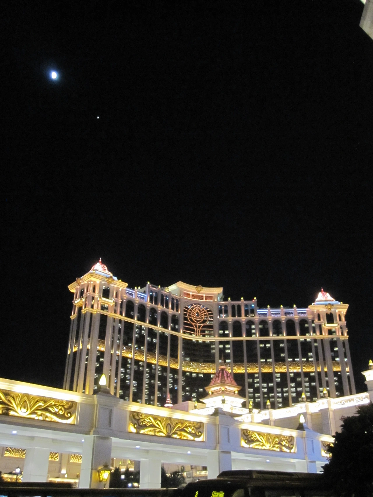 달이 밝게 빛나고 있었고, 그 아래로는 금빛 건물이 화려한 자태를 드러내고 있었다. 금빛 갤럭시 호텔은 어둠 속에서 더욱 돋보였다.