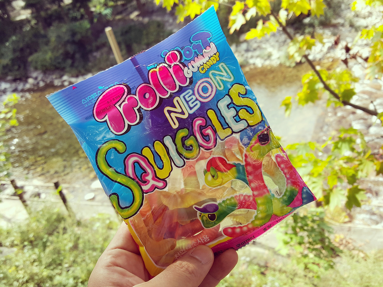 밥을 잘 먹는 아들을 위해 바로 옆에 있는 편의점에서 젤리를 하나 샀다. 젤리는 우는 아이를 웃게 만드는 신비의 묘약이다.