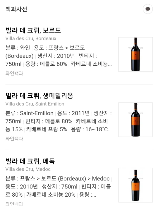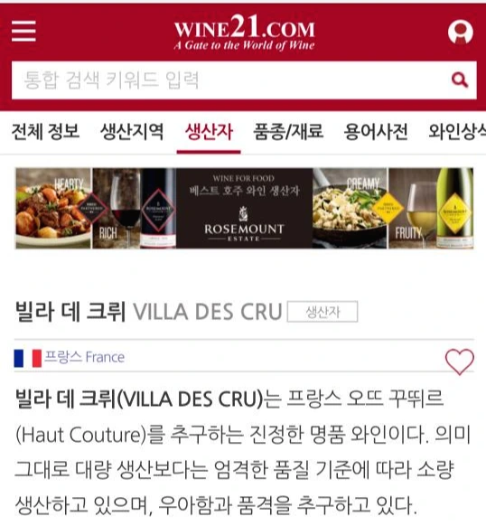 그러다 실마리를 하나 찾았다. 역시 와인21닷컴에 생산자로 '빌라 데 크뤼'가 등록이 되어 있었다.