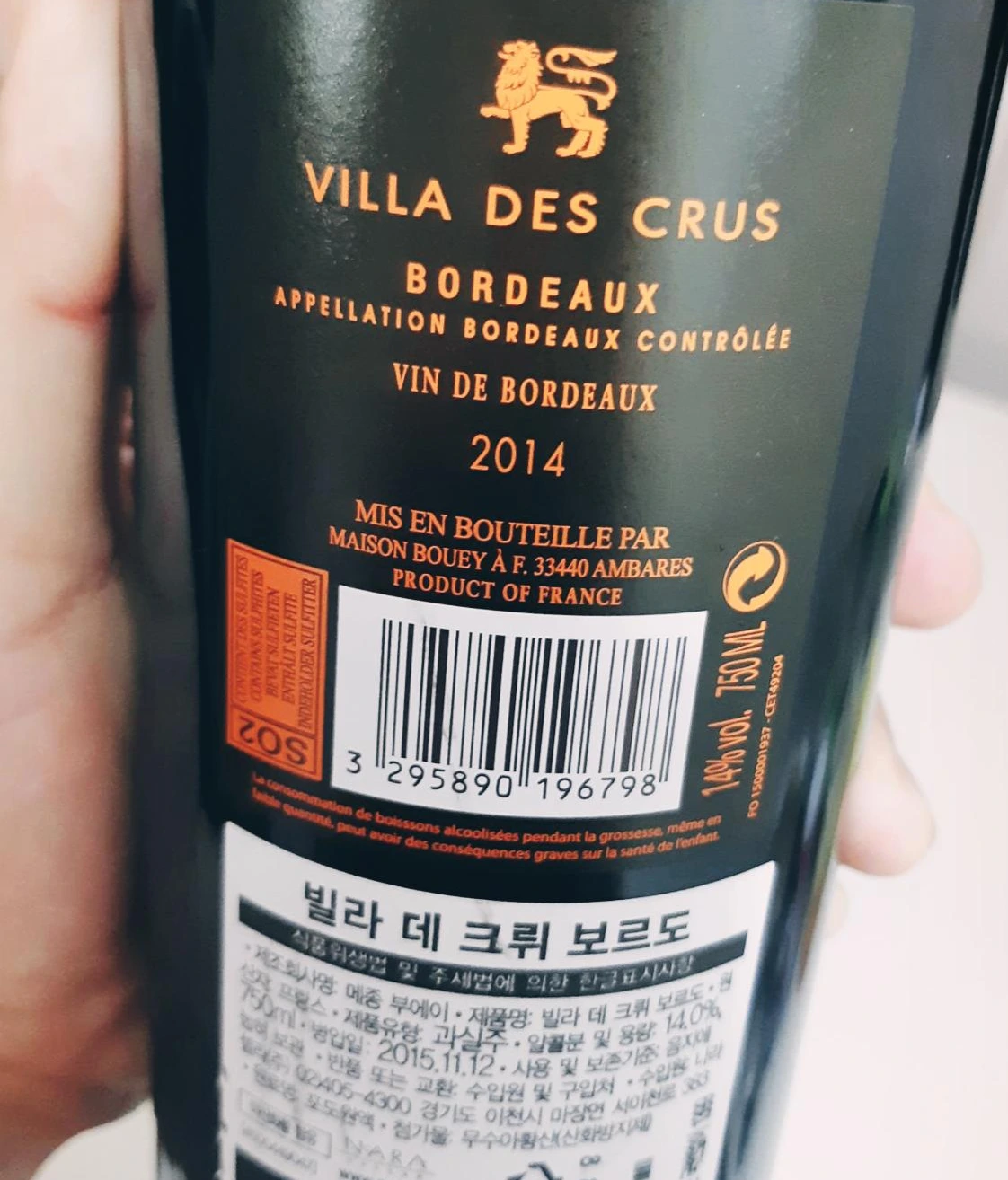 빌라 데 크뤼는 뒷면에 보면 'MIS EN BOUTEILLE PAR MASION BOUEY'라고 적혀 있는 것을 확인할 수 있다. 이 말은 메종 부에이가 병입했다는 뜻이다.
