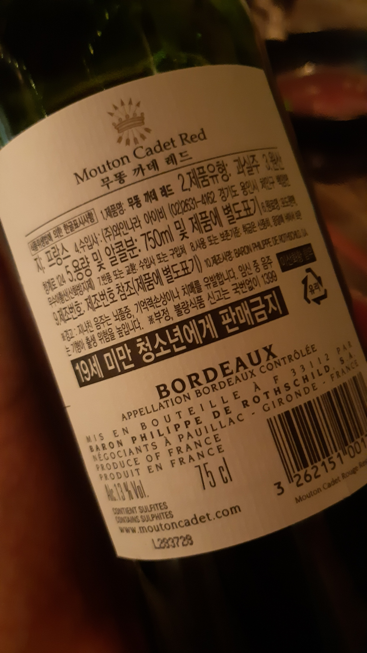 무똥 까데는 우리나라에서 마트에서는 2만원대 와인 전문 샵에서는 3만원데(정가 4만원)에 판매되고 있다.
