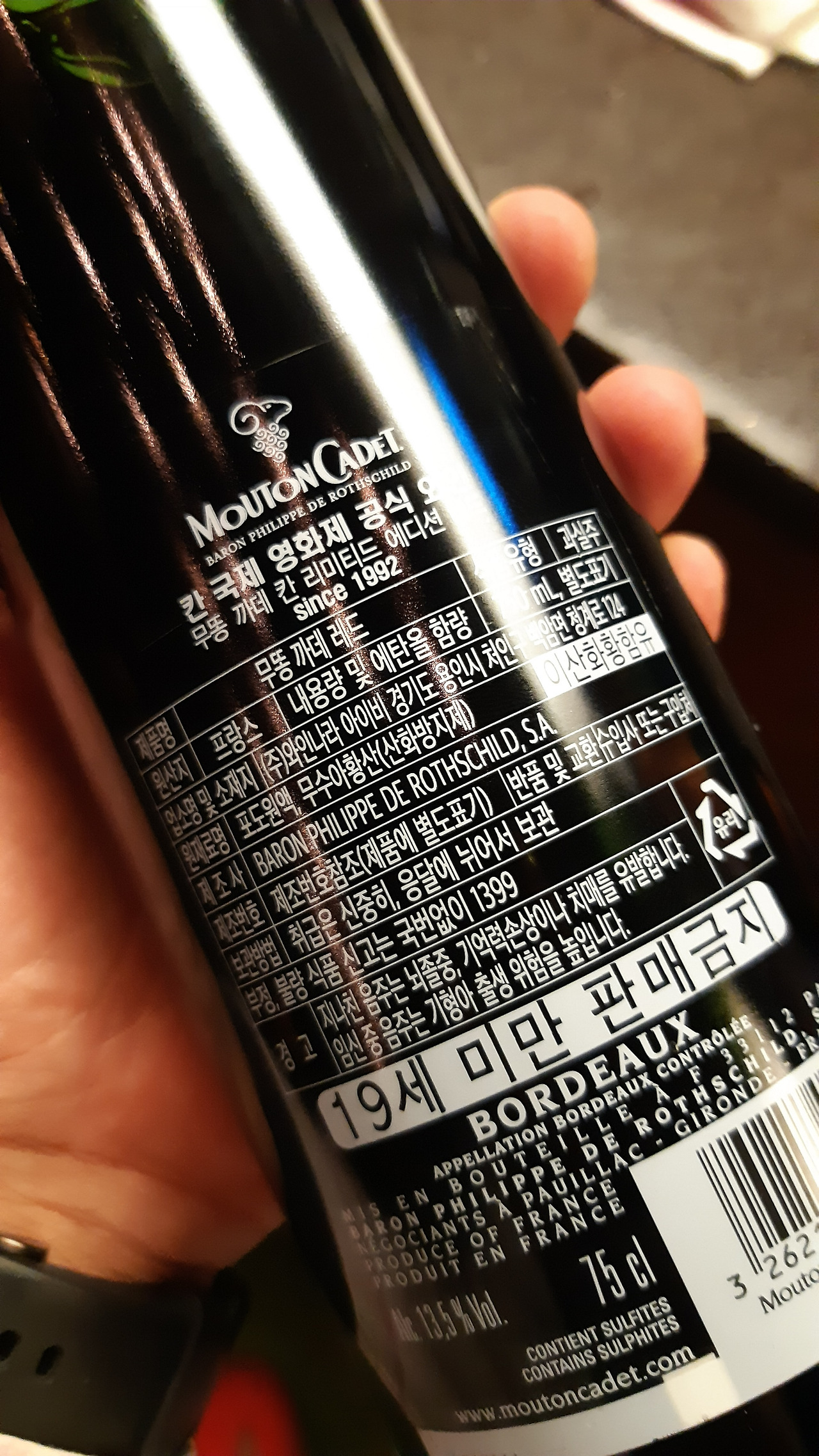 무똥 까데는 우리나라에서 마트에서는 2만원대 와인 전문 샵에서는 3만원데(정가 4만원)에 판매되고 있다.