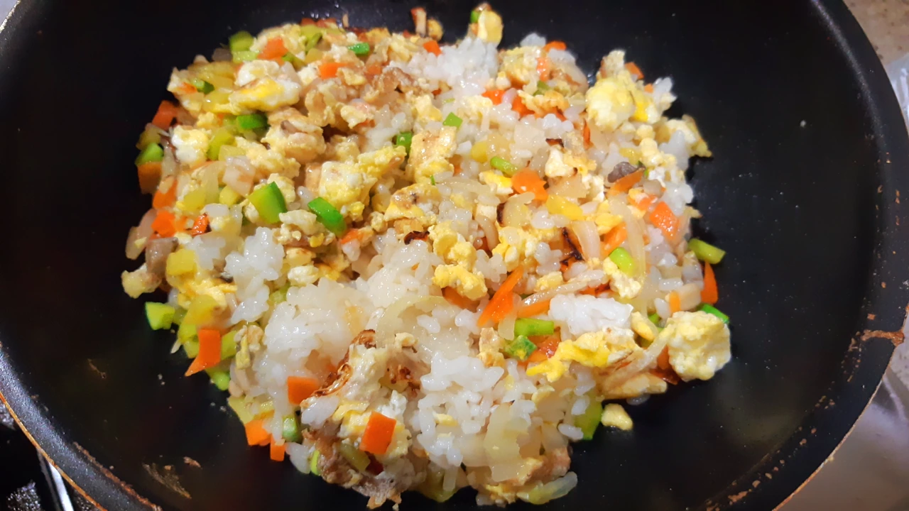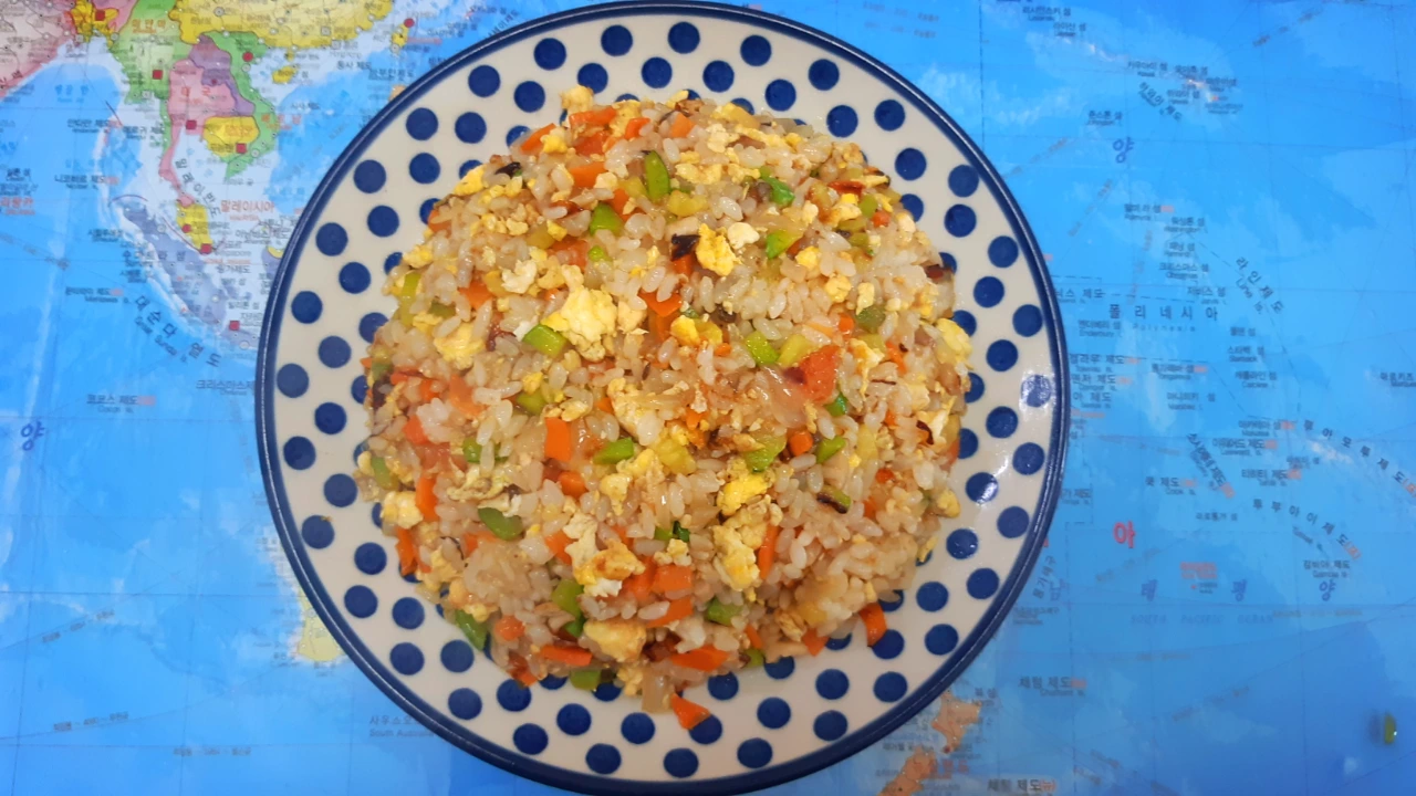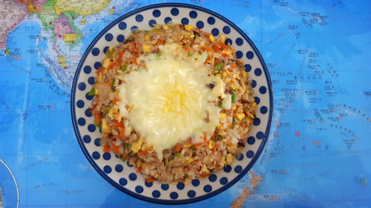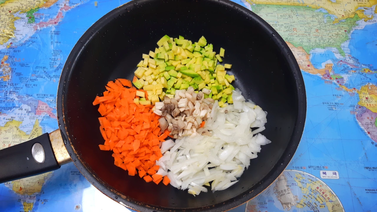 양파, 호박, 당근, 버섯, 계란, 식은밥, 모짜렐라 치즈, 소금