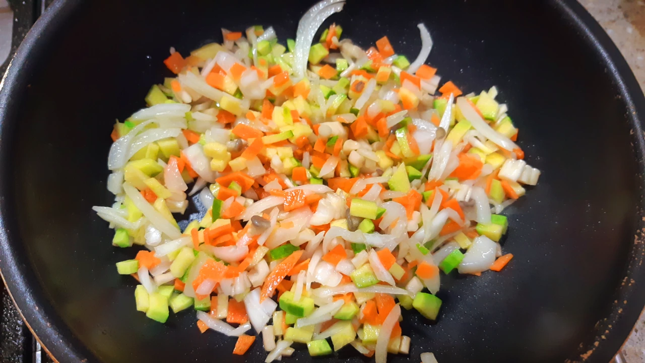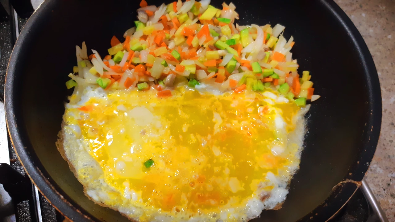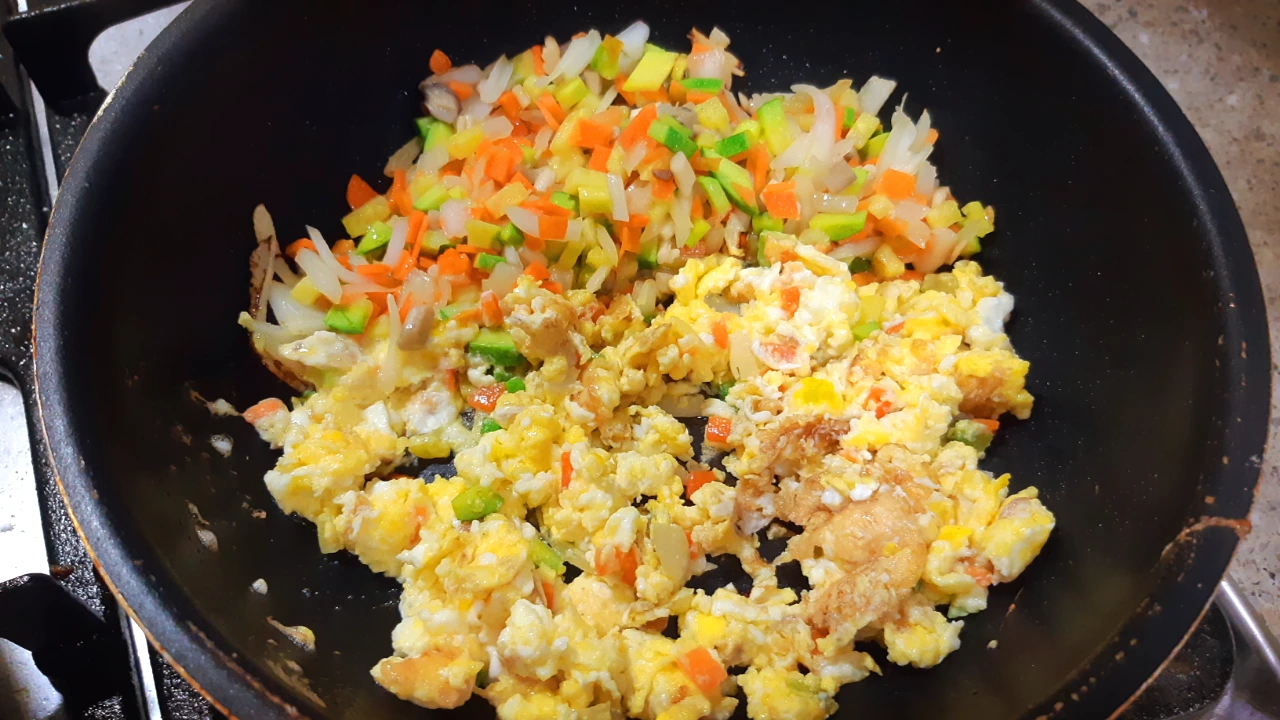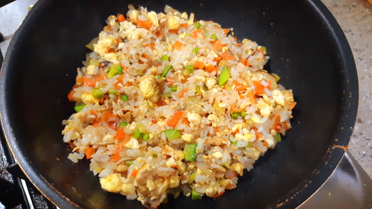 양파, 호박, 당근, 버섯, 계란, 식은밥, 모짜렐라 치즈, 소금