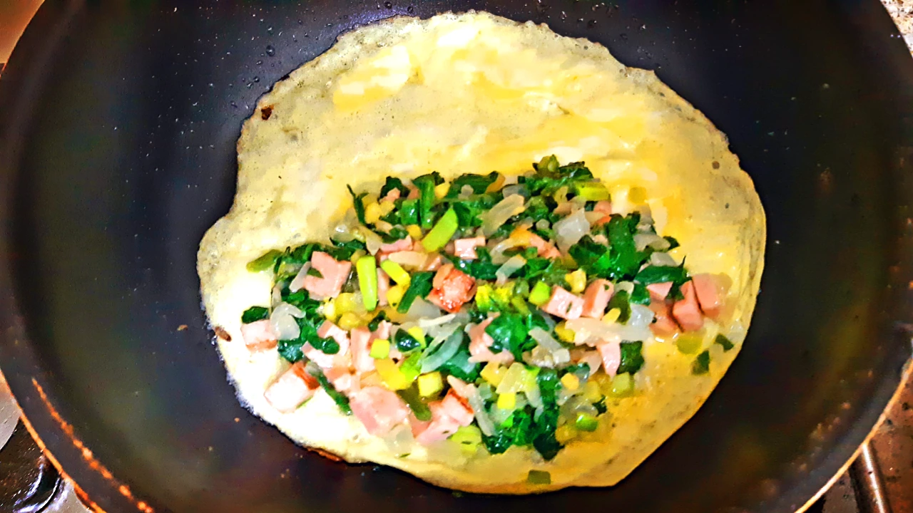 그래서 생각해낸 것이 바로 오믈렛이다. 그런데 단점이 있다. 오믈렛 안에 양파와 호박 등 속재료가 잘 익지 않을 경우 망할 수 있다는 것. 그래서 난 오믈렛을 만들때 재료를 미리 볶아놓는다.