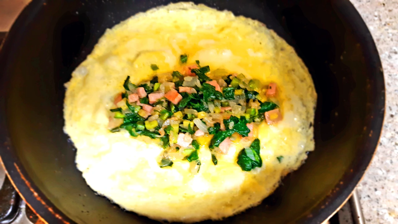 계란과 햄,양파, 호박 그리고 시금치!!!!