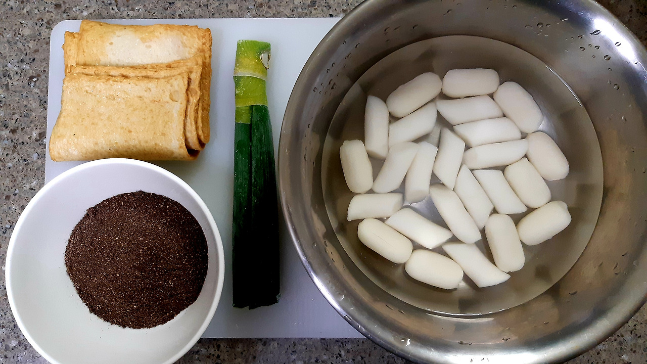 준비물 : 떡볶이 떡, 어묵, 대파, 짜장분말, 올리고당