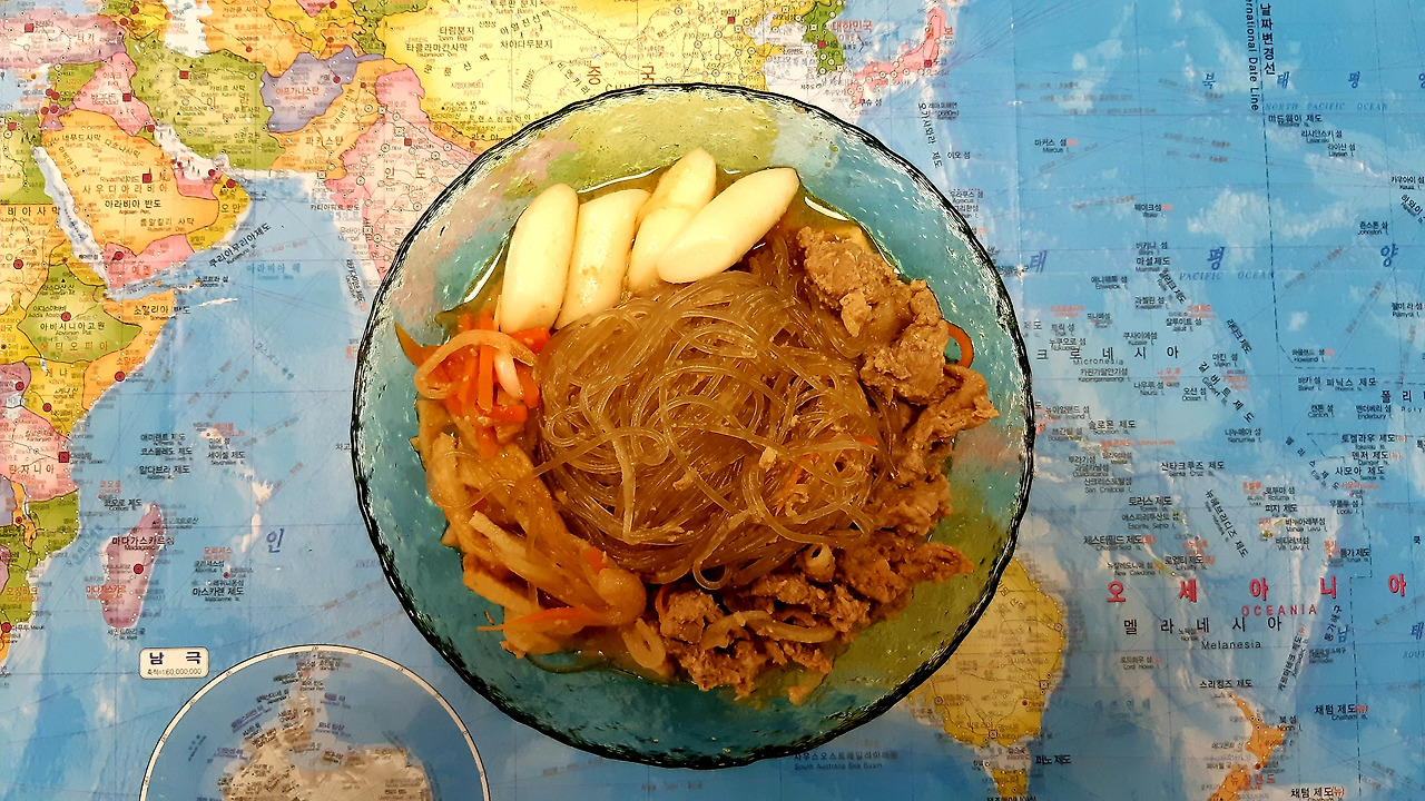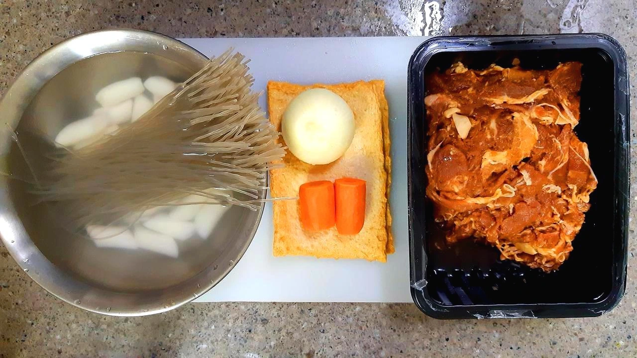 불고기, 양파, 당근(요리 속 붉은 색을 담당합니다), 오뎅, 당면, 떡볶이 떡