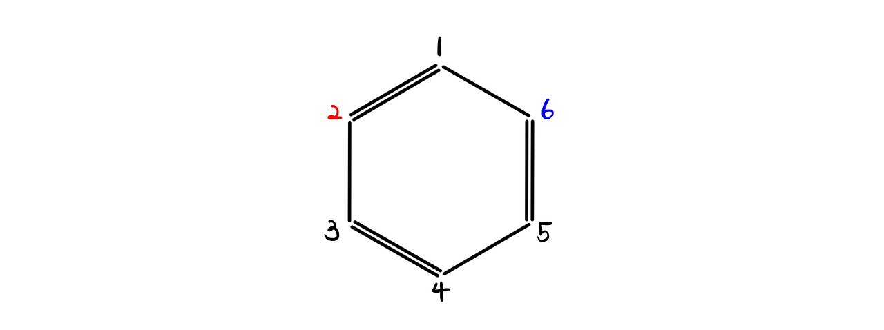 여기서 자세히 생각해 보자. 그림 5의 benzene에서 1번 C와 2번 C의 pz오비탈이 이중 결합(π-bond)을이루고 있다. 그럼 2번 C 대신 1번 C와 6번 C의 pz오비탈도 π-bond가 가능하지 않을까?