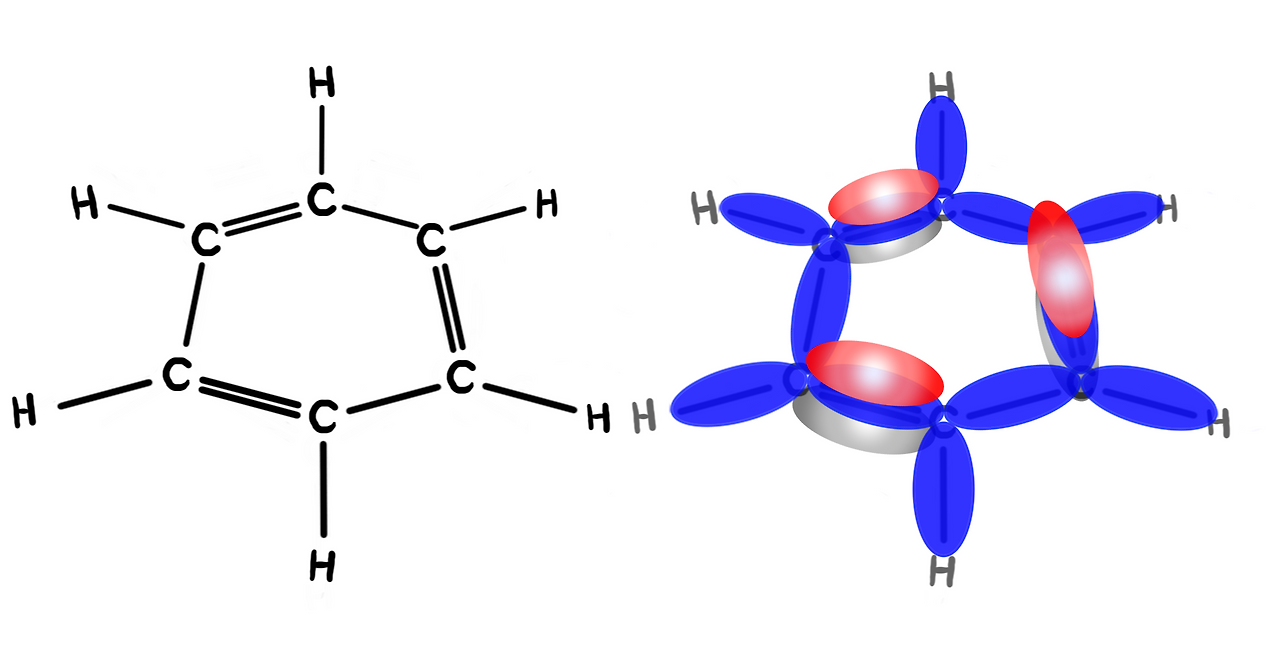 이제 benzene을 화학적으로 다가가 보자. δ-bond(시그마 결합), π-bond(파이 결합)를 익혔으니 단일 결합과 이중 결합이 단순하게 하나와 둘인 결합 개수 차이가 아니라는 것을 알게 되었다. 거기서 끝이 아니라 오비탈과 양자역학도 거쳐왔으니 benzene이 그림(구조식)대로 단순하게만 보이지 않을 것이다. 무언가 이상하거나 불편하거나 궁금한 게 떠오를 것이다.