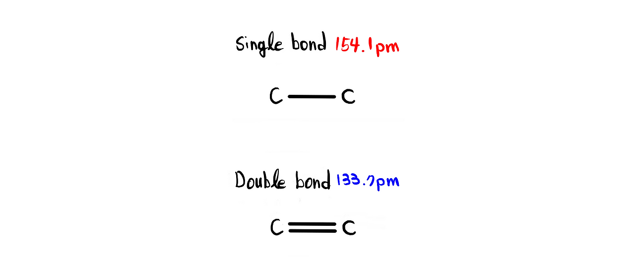 그림 3. C-C 결합에서 단일 결합과 이중 결합 길이의 차이