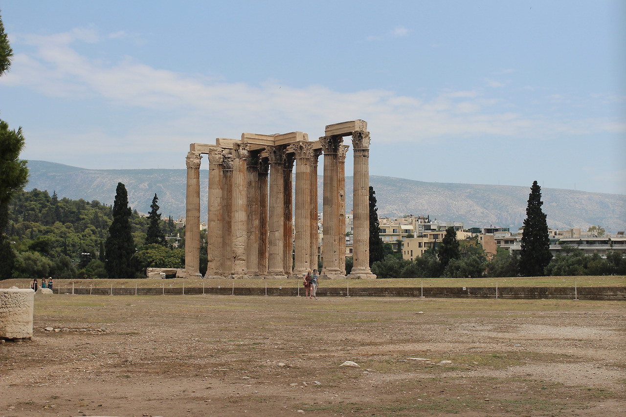 광장까지는 가깝기에 걸어가기로 했어. 걸어가면서 '역시 아테네인가'할 정도로 곳곳에 유적이 보였어. 그중 하나를 구글맵으로 확인하니 제우스 신전이었지. 신전은 기둥만 남았는데 기둥 크기가 파르테논 보다 크더라고. 역시 아테네지만 그리스 신화의 제우스가 주신이라는 걸 확인한 것 같았어. 하지만 약속 시간이 촉박해서 쓱 지나갔지.