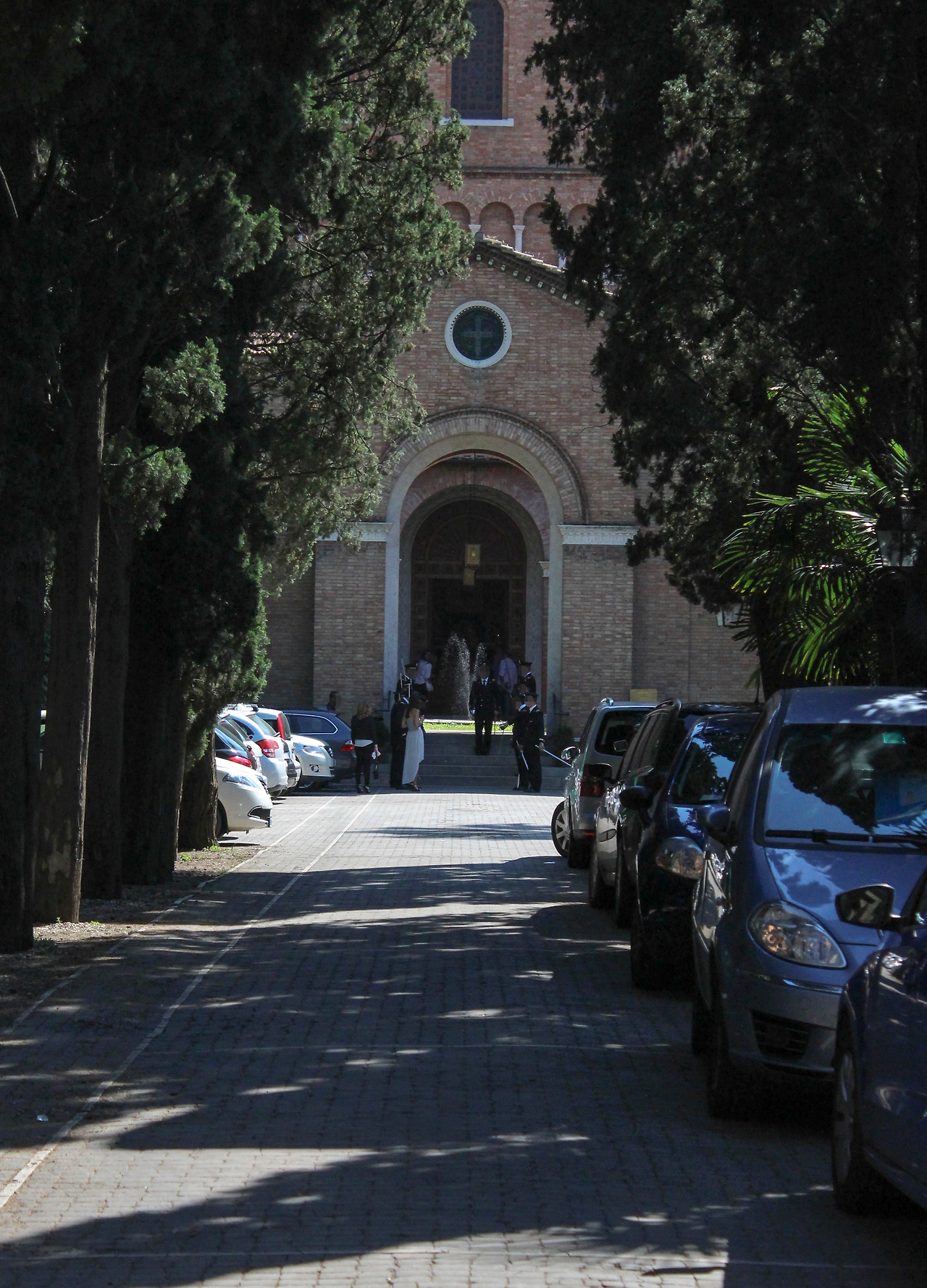 바로 뒤쪽으로 성 안셀모 대학교(Pontificio Ateneo Sant'Anselmo)가 있어. 그곳에서 결혼식이 끝나고 제복 입은 사람들이 에스코트해주는 길을 신랑 신부가 행진하며 밖으로 나오는 풍경도 아름다웠어. 그대로 그 길을 따라 언덕을 내려오자 현대의 로마 풍경이 나왔어. 언덕 위에는 중세 같은데 말이야.