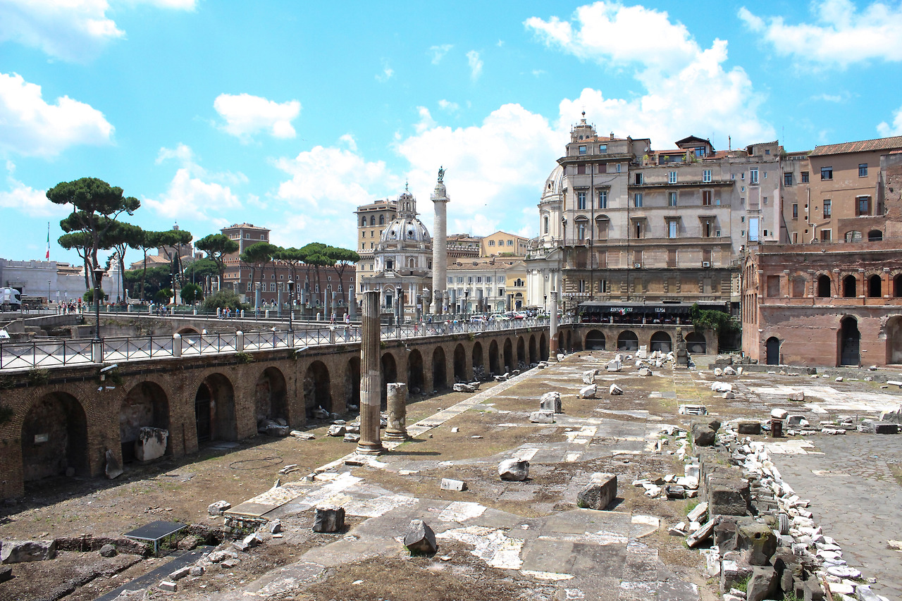 골목 구경하다 보니 이러다 시간이 다 지날 거 같아 다시 콜로세움이 보이는 직선의 대로로 나왔어. 이 대로는 포리 임 펠리 알리 거리 (via del Fori imperiali)로 주위에 고대의 흔적이 그대로 있어. 특히 다수의 바실리카 흔적들이 있지. 포로 로마노만으로는 부족해져 추가로 건축했다고 해. 하지만 대로가 그것들을 가로지르고 있었어. 로마에 아스팔트 대신 돌 도로를 깔만큼, 생활의 불편함을 감수할 만큼 유산을 사랑하는 로마인들이 왜 그랬을까?