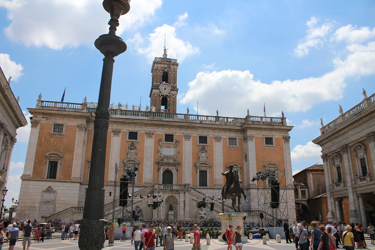 미켈란젤로가 설계했다고 하는데 정말 천재야. 가운데는 현재 시청 건물로 쓰이는 세나토리오(Senatorio) 궁전이 있고, 그 양쪽으로 콘세르바토리(Conservatori) 궁전, 누오보(Nuovo) 궁전이 있어. 이 둘은 현재 카피톨리노 박물관으로 사용되고 있어.