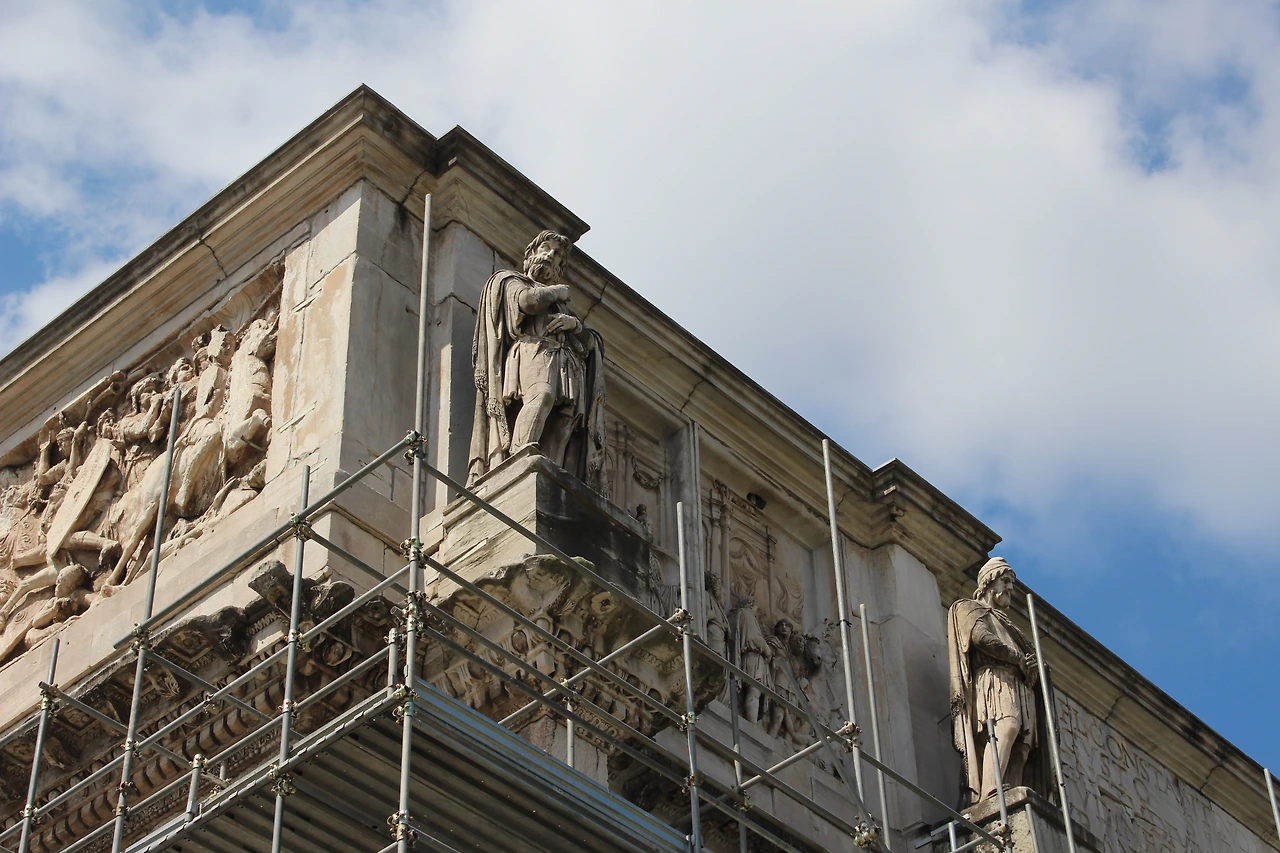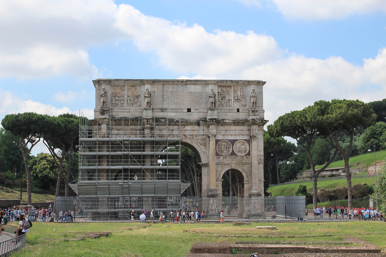 바로 옆에는 콘스탄티누스 개선문이 있어. 콘스탄티누스는 기독교를 정식 종교로 공인하여 현재까지 지대한 영향을 준 인물로, 콘스탄티노플을 건설하여 비잔티움 시대를 시작한 로마의 위대한 황제로 많이 유명하지.