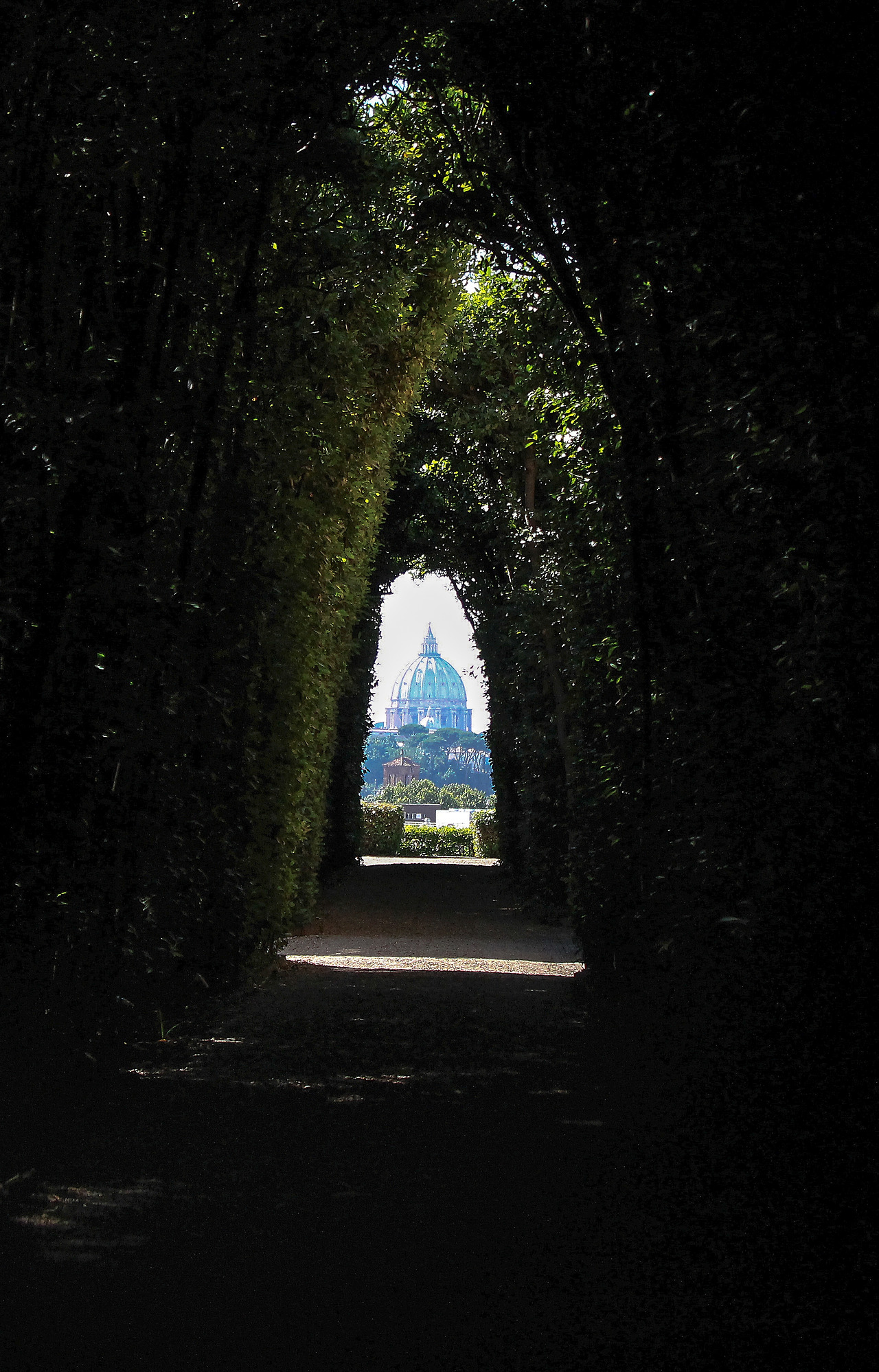 체력을 어느 정도 보충하고 바로 옆 몰타 기사단의 열쇠 구멍으로 갔어. 짧은 줄이 있어 우리도 줄을 선 후, 열쇠 구멍에 눈을 대봤어. 그러자 바티칸의 성 베드로 성당이 보였어. 로마에 서서 몰타 기사단의 정원을 통해 바티칸의 성 베드로 성당이 보인다는 이유로, 3개의 나라를 관통해 한 번에 볼 수 있다는 이유로 이곳을 찾지만, 그런 것 보다 허리를 굽혀 눈을 대면 열쇠 구멍을 통해 또 다른 세계의 아름답고 신비한 풍경을 봤다는 느낌이 좋았어.