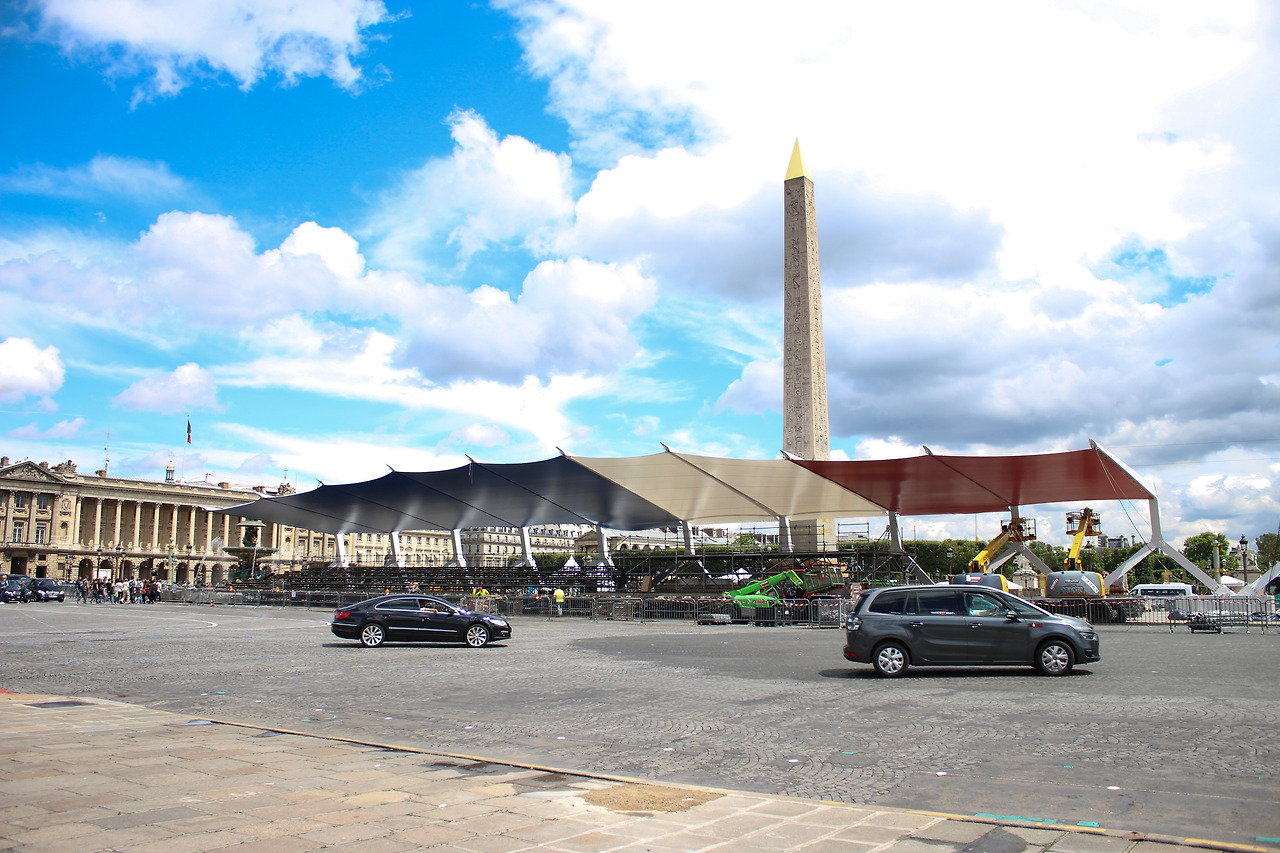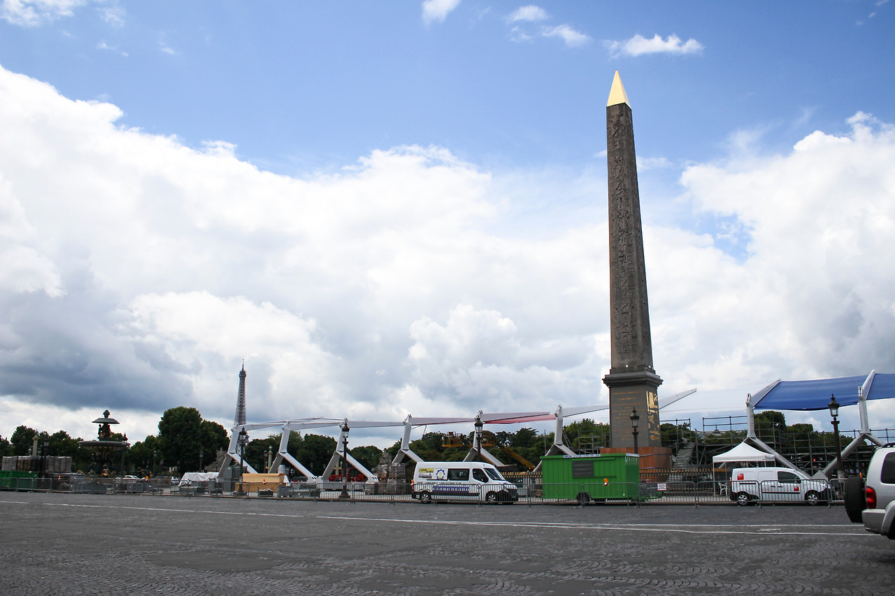 오벨리스크가 있는 곳은 콩코드 광장이야. 피의 역사가 있던 곳으로 파리에서 가장 넓은 광장이지. 하지만 공사 중이라 아주 가까이 가지는 못했어.