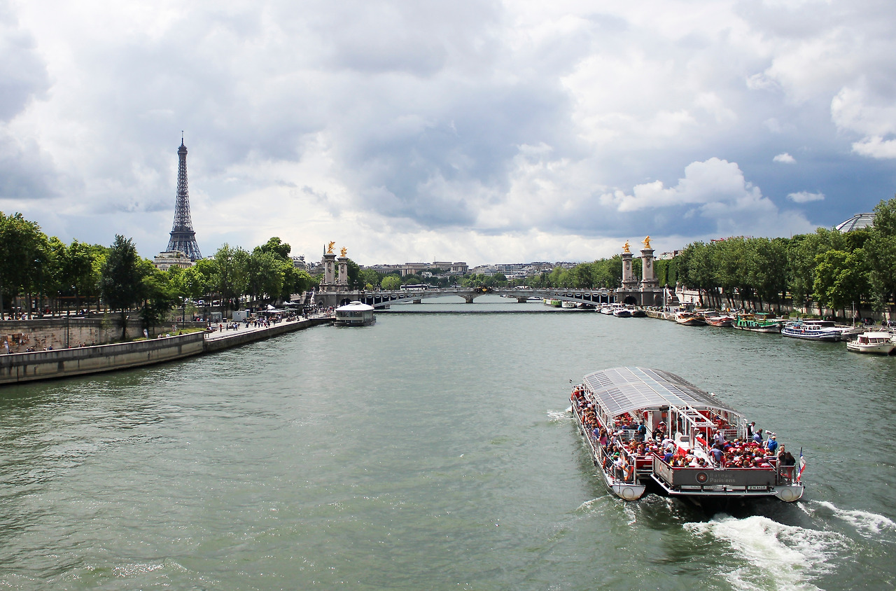 이곳에서 뛸르히 정원 반대편을 바라보면 멀리 개선문이 보여. 개선문의 규모를 다시 느낄 수 있었지. 그대로 다리를 건너면 센강에서 가장 화려하다는 알렉상드로 3세 다리와 에펠탑을 동시에 담은 그림을 볼 수 있어. 당연히 포토타임.