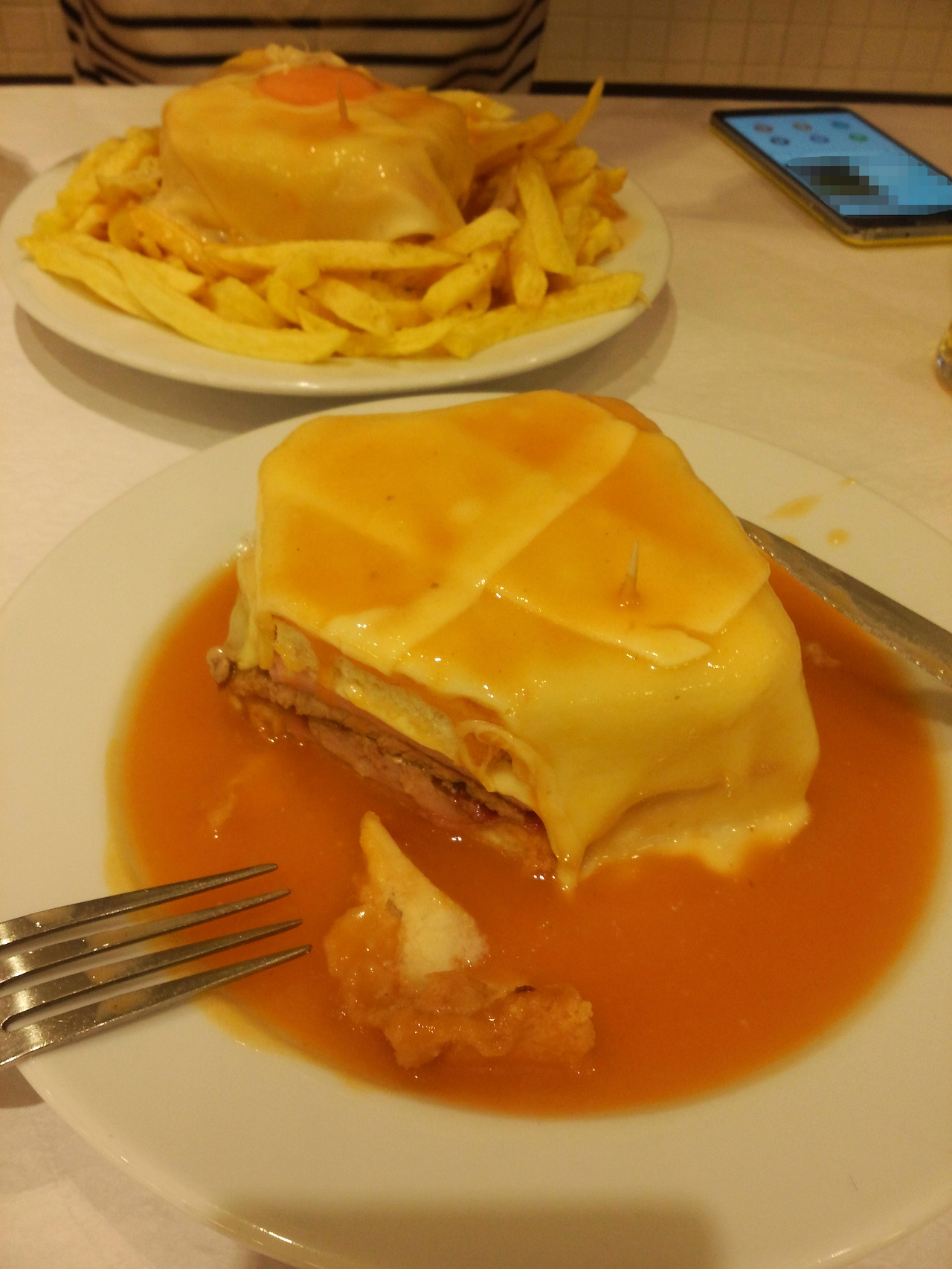 이 집은 프란세지냐(francesinha) 식당이야. 당연히 프란세지냐를 주문했어. 우리가 첫 손님 같았는데 그 후 사람들이 줄지어 들어왔어. 1명씩 들어와 자연스럽게 주문하고 안부를 나누는 모습이 진정한 단골들이었지.