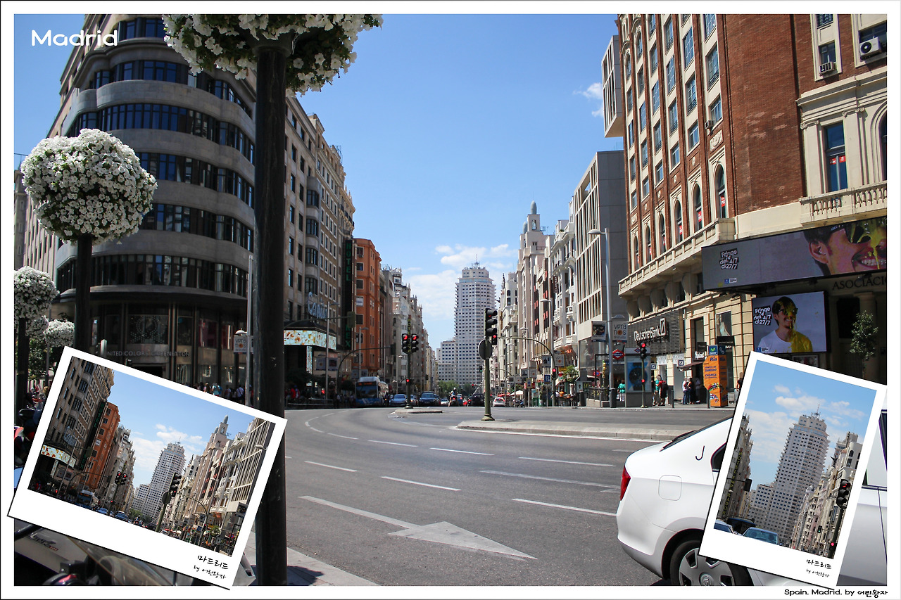 이번에는 사람 없는 골목으로 다니다 비싸 보이는 동네를 걸었어. 그러다 멀리 아주 크고 하얀 건물이 보였어. 유럽에서 이 정도 높은 건물은 흔치 않았기에 저절로 가까이 걸어가게 되더라고. 그러자 사람이 점점 많아지고 영화관, 공연 극장, 대형 상점, 백화점 등이 눈에 들어왔어. 이곳은 마드리드에서 가장 핫하다는 그란 비아.