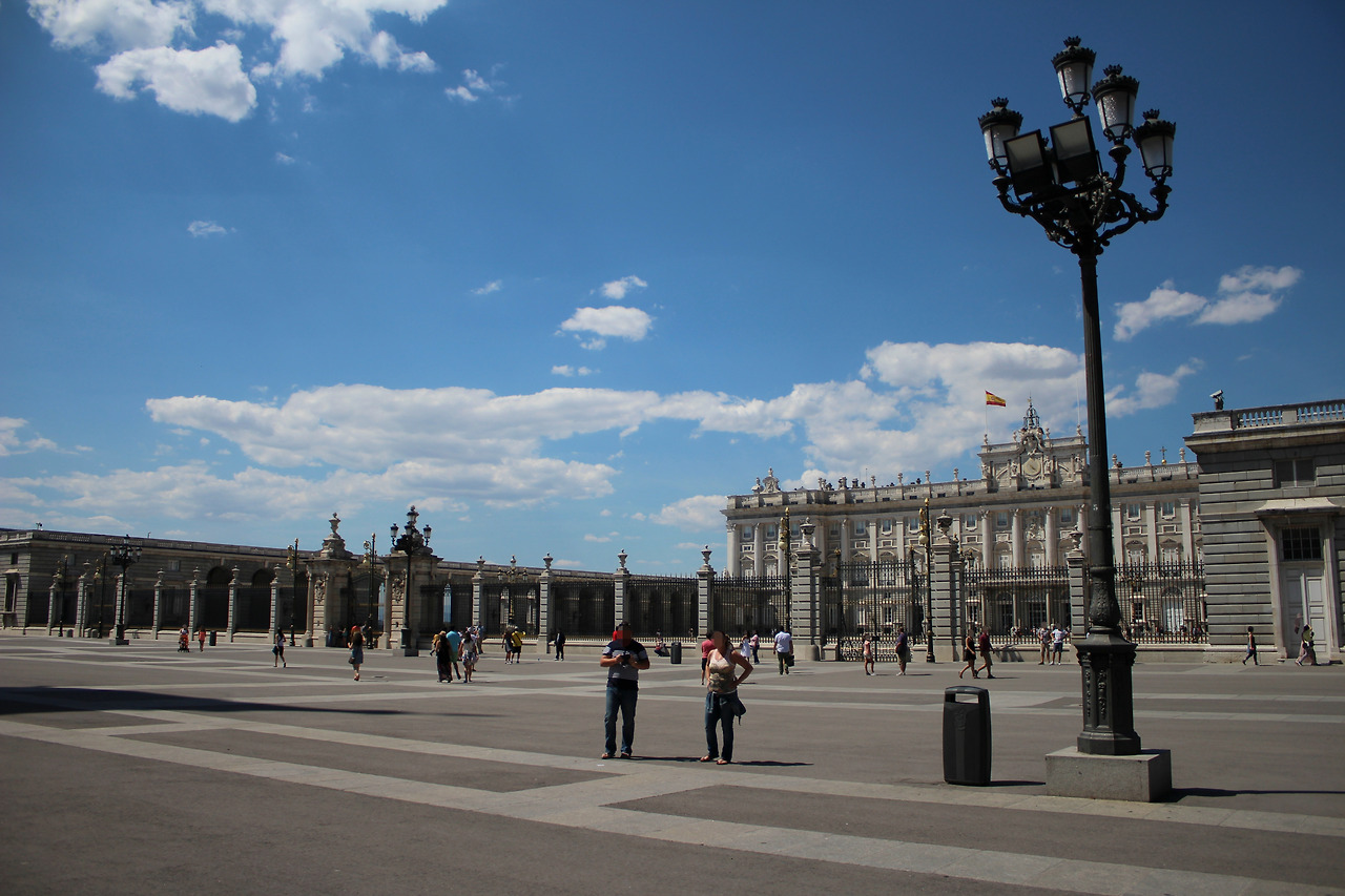 그대로 길을 따라 걸어가 걷다 보면 마드리드 왕궁이 나타나. 생각보다는 작아. 여행을 다니다 보면 왕궁을 많이 보게 되는데 딱히 왕궁이라는 느낌이 안 들어. 한국인이라 그런가. 경복궁 같은 넓은 공간이어야 왕궁 같아. 그리고 집 같지가 않고 놀러 가는 별장 같다고 해야 하나.