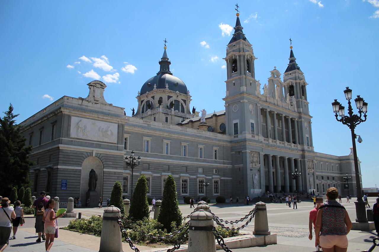 하지만 이곳에도 그늘 한점 없어서 빠르게 지나쳐 왔어. 바로 앞에는 알무데나 대성당이 있고, 많은 사람들이 입구 그늘에 앉아서 쉬고 있었어. 이곳은 다음에 내부로 들어갈 때 이야기해줄게.