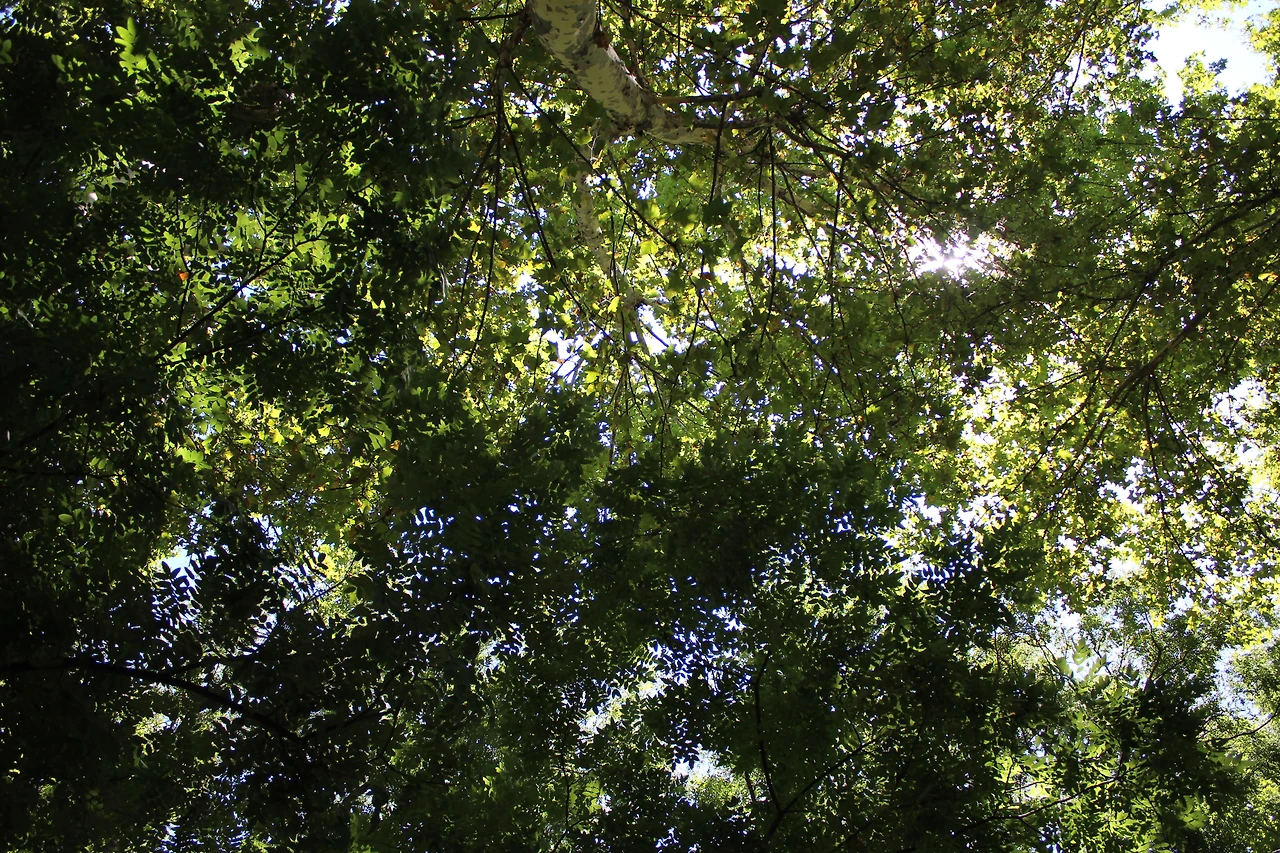 누워서 본 나무와 하늘