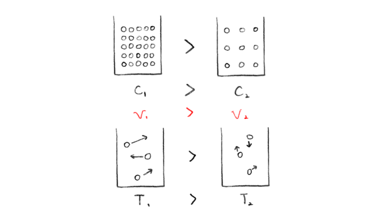 그렇다, 분자도 마찬가지이다. 산을 오르기에 적당한 온도와 날씨라면 덜 힘들게 오를 수 있고, 꼭 정상이 아니라 촉매로 만든 지름길 혹은 터널을 통해 갈 수 있다면 더 빠르게 갈 수 있다. 그리고 시도 횟수가 많을수록 목적지에 도달하는 횟수가 많아진다. 분자도 우리와 같이 목적지를 향해 걸어가고 있는 것이다.