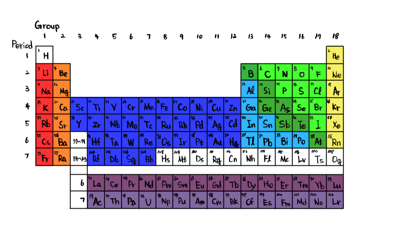 이제 표를 보면 크게 가로 줄은 주기(period), 세로 줄은 족(group)으로 표기되어있다. 마찬가지로 이에 의미가 있다.