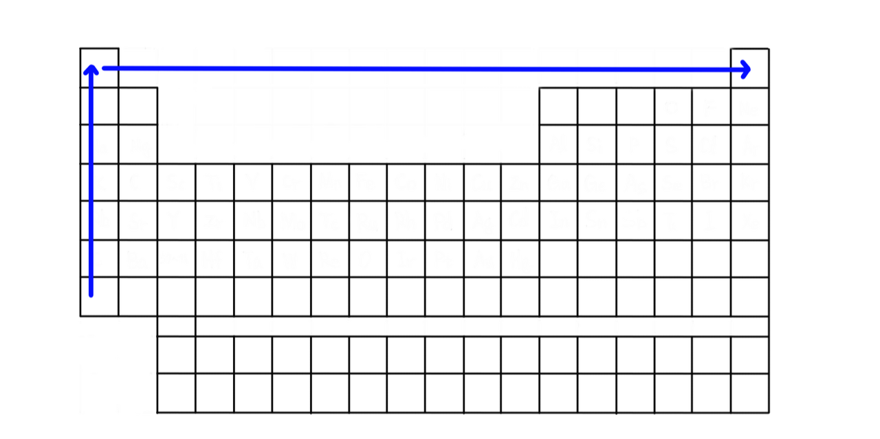 주기율표의 장점은 원자의 주기성으로 원자의 성질을 예측, 파악하는 것이다. 이제 본격적으로 주기율표의 주기성 혹은 경향성을 알아보자. 앞으로 이야기하기 쉽도록 주기가 커지는 것을 주기율표 '아래쪽으로 내려간다', 족이 커지는 것을 '오른쪽으로 간다'라고 간단히 표현할 것이다. 그러니 주기율표를 보면서 이야기 해보자.