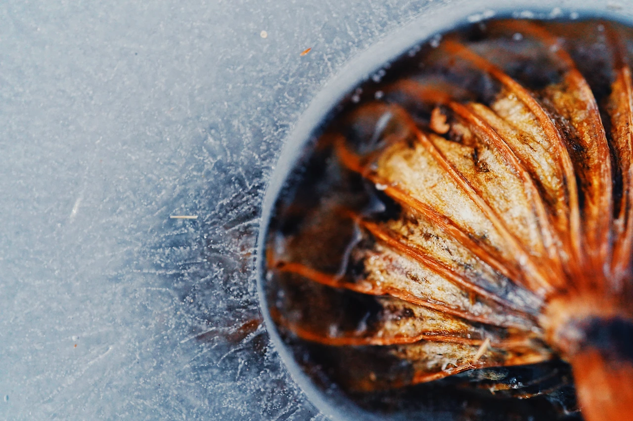 그 겨울의 중심엔 얼음에 담겨있는 연밥과 연씨가 있다. 연꽃의 중심은 겨울의 중심을 버틸 것이다. 그동안 연꽃은 단 한 번도 포기한 적도 없었다. 심지어 물이 말라버린 땅 속에서도 죽지 않고 끝까지 버티고 버텼다. 그 말라버린 땅이 촉촉해지면 다시 뿌리는데 멈추지 않았다. 물 위로 꽃까지 보여주기까지 했다. 그 마음을 알 수는 없으나, 겨울의 얼음을 즐기고 있는 건 아닐까? 봄이 되기 시작하면 고생하고 고생해서 뿌리와 잎은 물론이고 꽃까지 펴야하니. 어쩐면 즐겁게 쉬고 있는 모습을 사진으로 찍었는지도 모르겠다.