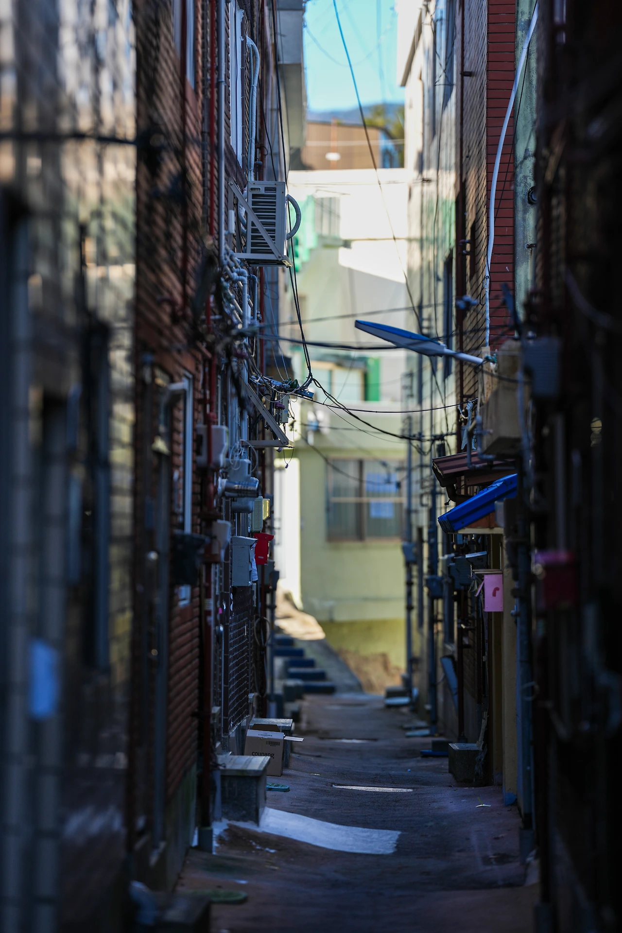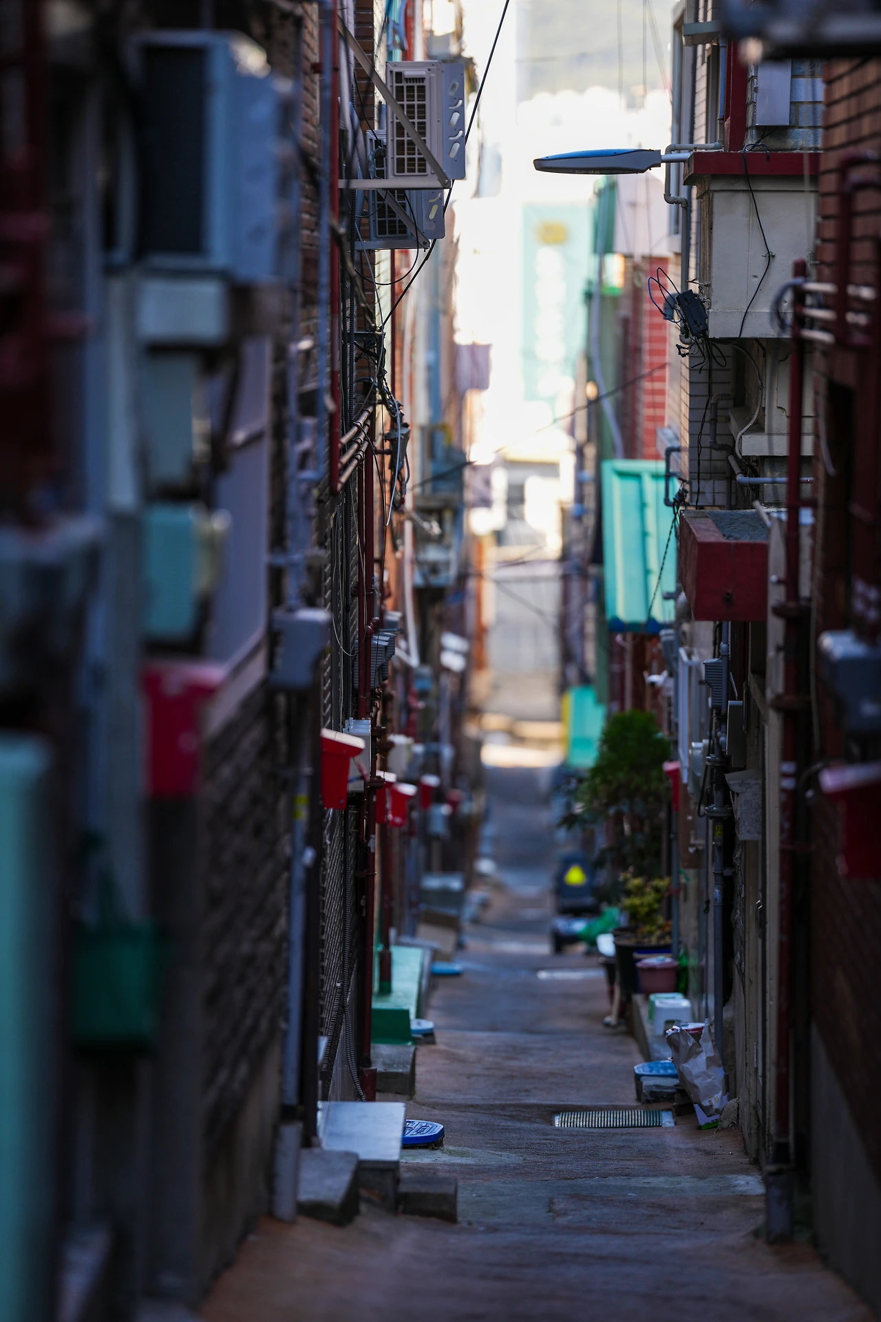 이 동네 역시 먼저 외부에서 압축하는 느낌으로 촬영한 뒤, 골목 안으로 들어가 보자. 서동의 골목은 굳이 망원 렌즈가 아니더라도 빡빡한 인상을 줄 수밖에 없다. 대신에 망원 렌즈를 사용할 경우, 이 동네가 가진 더 솔직한 거리감이 드러난다. 가까워 보이지만 쉽게 닿을 수는 없는 거리, 서동은 그 간격을 숨기지 않는 동네다.