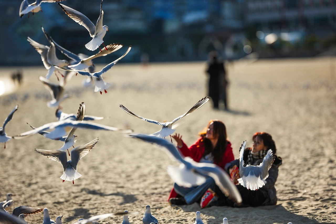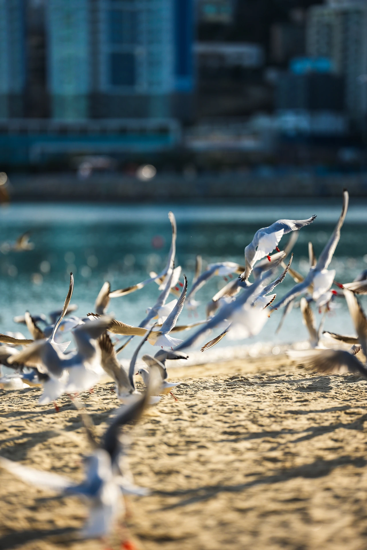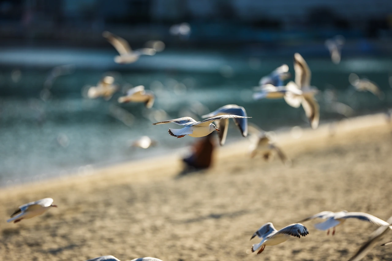 이 갈매기들을 많이 담은 사진을 찍고 싶었다. 그런데 135mm였기에 제법 뒤로 가야만 했다. 걱정할 수도 있지만 F1.4 덕분에 마음에 드는 결과가 나왔다. 수많은 갈매기들의 각기 다른 펄럭임이 겹치며 보케와 흐림은 충분히 만들어졌다.