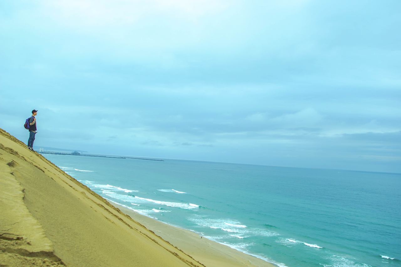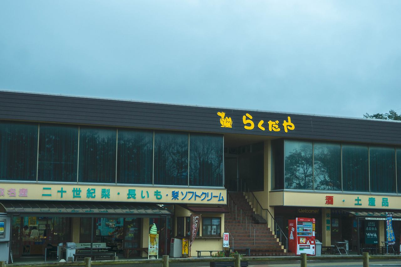사실 이번 여행은 오로지 샌드보드를 타기 위해 온 여행이라고 10번을 말해도 아깝지가 않을 정도로 보드 하나 만을 바라보고 왔다. 돗토리 사구도 특별한 곳이지만 우리나라에도 사구는 있다. 근대 왜 여기였냐? 이유는 낙타와 행글라이더, 샌드보드를 탈 수 있는 곳이라 이 곳을 계획했다. 한국에서 예약까지 완벽히 마무리하고 날씨가 시시각각으로 변해 내 운에 맡겼는데 며칠 전 뽑은 보통운 때문인지...... 오전까지 맑았던 날씨는 야속하게 오후에 폭풍 비슷하게 내리쳤다. 설마설마하는 마음으로 예약했던 '라쿠다야'를 방문하는 순간 도착한 메시지 하나...... 우천으로 모래가 딱딱해져 위험하니 다음 기회에 타자는 문자였다. 들어가 점장님에게 사정을 했지만 오늘 예약한 손님은 나뿐이었고 법이 있는 거라 지키지 않으면 안 된다고 하셨다. 분명 나에게 더 좋은 걸 주시기 위해 이런 아쉬움을 준거라며 애써 위로해주신 아저씨를 뒤로하고 과일 배로 유명한 이곳 아이스크림을 하나 사들고 나왔다. 힘없이 터덜터덜 사구에 올라갔다.