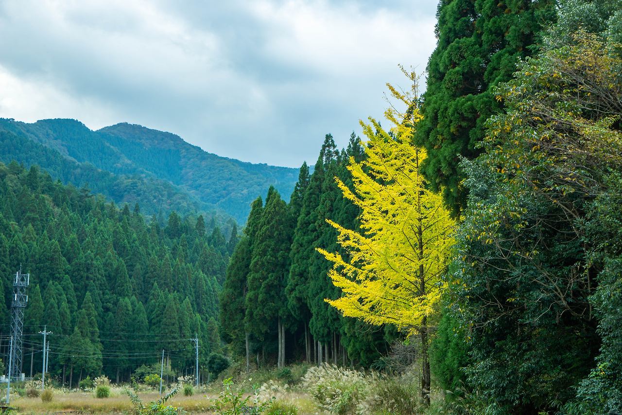 빠르게 진행된 1000엔 택시의 3시간은 내가 보려던 장소들을 다 보고도 시간이 조금 남았다. 근처 유명한 신사를 잠깐 들리자고 기사님은 말해주셨다. 한 곳이라도 더 볼 수 있다면 마다할 이유가 없어 레츠고를 외쳤다. 가는 길에 만난 왕따 은행. 혼자서만 우두커니 서서 모두의 부러음을 받는 건지 시기 질투를 받는 건지 알 수 없지만 먼저 성숙해져 버린다고 해서 좋은 점도 나쁜 점도 있을 것이다. 사람도 마찬가지로