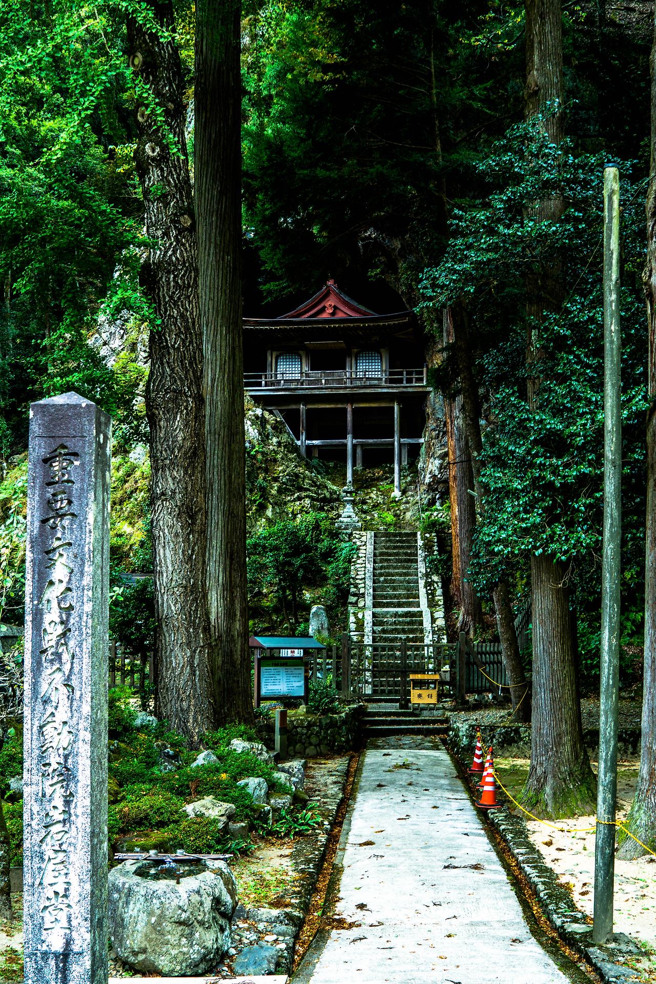 돗토리역에서 택시로 40~50분을 달려 도착한 후도인 이야와도 사실 요나고 관광지를 검색할 때 꼭 가보고 싶었던 곳 중에 하나가 미도쿠산 투입당이었다. 그 모습과 비교할 수는 없겠지만 동굴 안에 당을 넣었다는 것이 같은 후도인 이야와도는 조금 장엄한 느낌을 받았었다. 저 멀리 산꼭대기에서 흐르는 강을 건너면 보이는 이곳은 들어가서 보지는 못하고 밖에서 구경만 할 수 있었다. 수평을 계산해서 맞춰놓은 지지대를 보고 있자면 인간이란 얼마나 경이롭고 대단한가를 새삼 깨닫는다. 동굴 안에 절을 만들 생각을 한 고보다이시라는 사람이 되어 그곳을 한참을 바라보다 사진을 찍고 다른 곳으로 향했다.