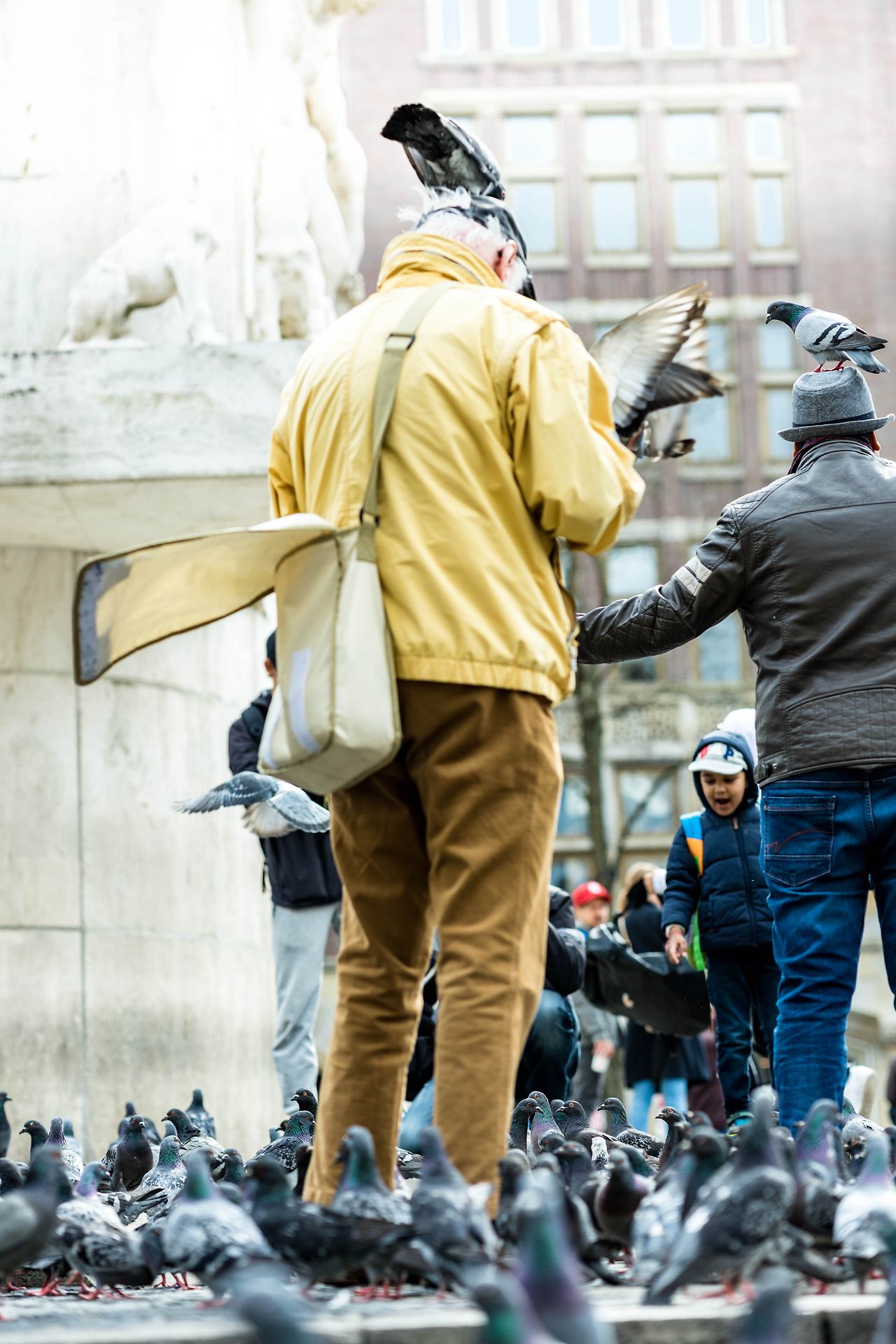 피리부는 사나이처럼 먹이로 비둘기들을 통솔하고 있는 할아버지... 정말이지 멀리하고 싶다.