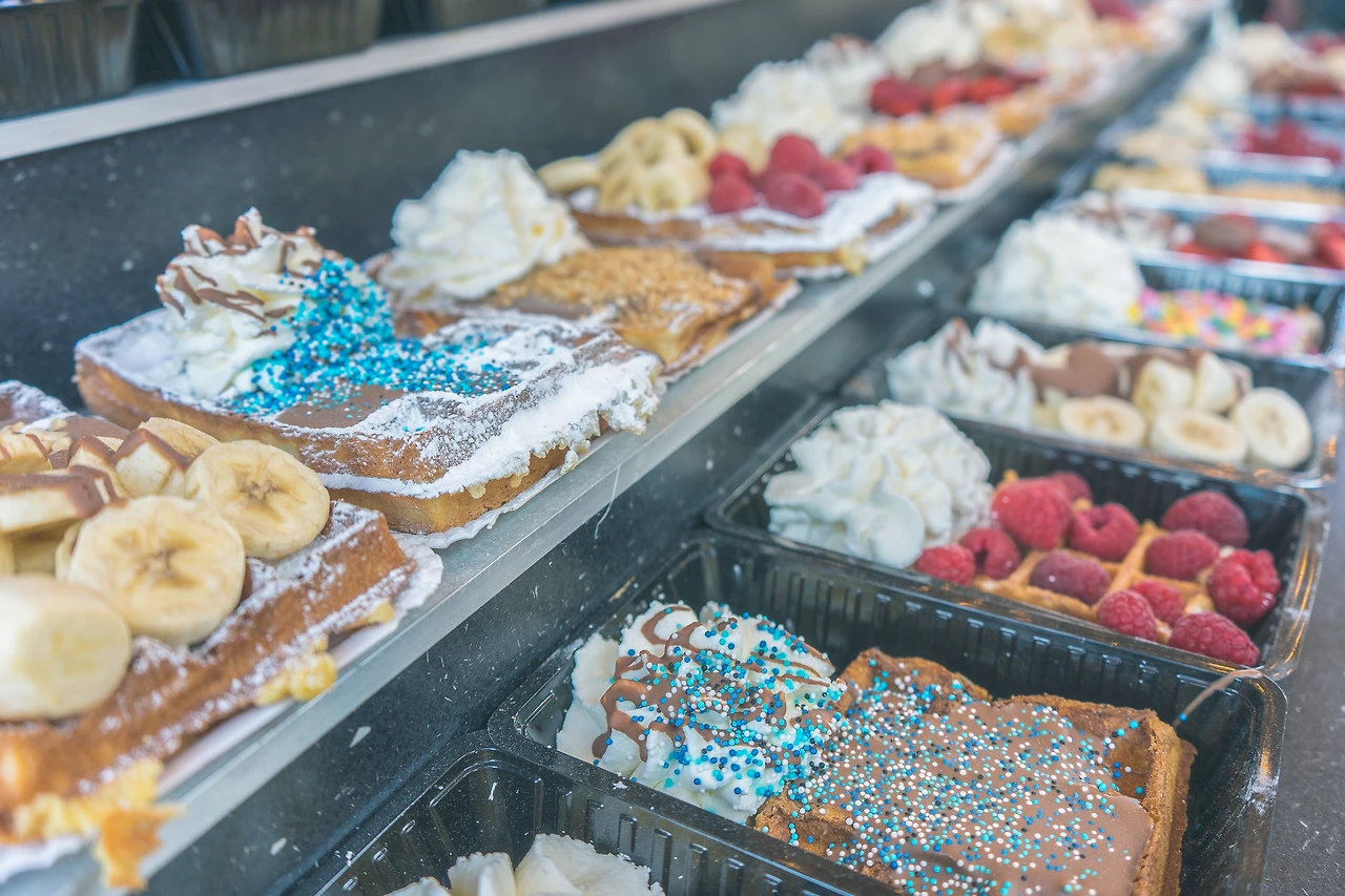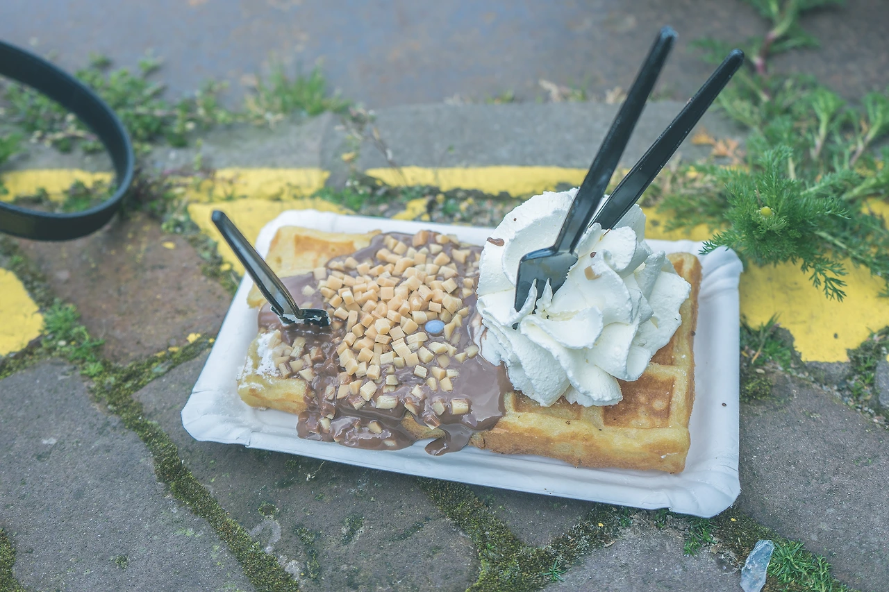 아이스크림과 후식이 땡겨 아까 점심을 먹은 곳에서 보인 와플집으로 갔다.