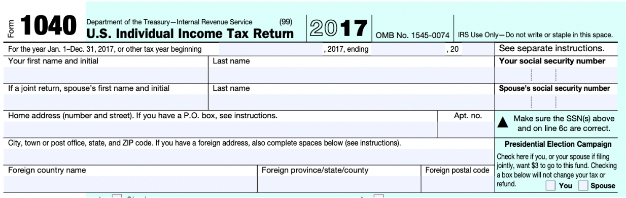 2017 US 세금 포맷 : 기입을 해야 하는 칸 끼리의 간격이 너무 좁아서 매우 성가신 느낌을 줍니다. 두 번째 칸의 Last name가 가리키는 것을 놓치기가 쉽습니다. 게슈탈트 근접성 이론에 따라서 배우자와 분야를 구별했다면 더 좋은 경험을 줄 수 있었겠죠.