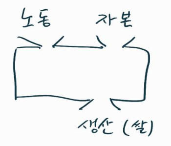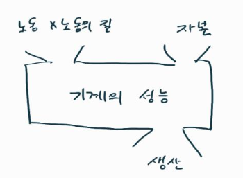 단순하게 기계에 비유를 들면 기계에는 노동이라는 요소 하나와 자본이라는 요소를 투입하면 생산량이 만들어진다. 노동과 씨앗이라는 자본이 섞어져서 쌀이 배출된다.